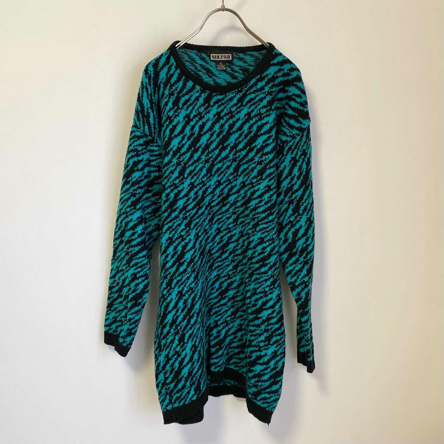 Vintage USA retro zebra pattern green×black long knit sweater