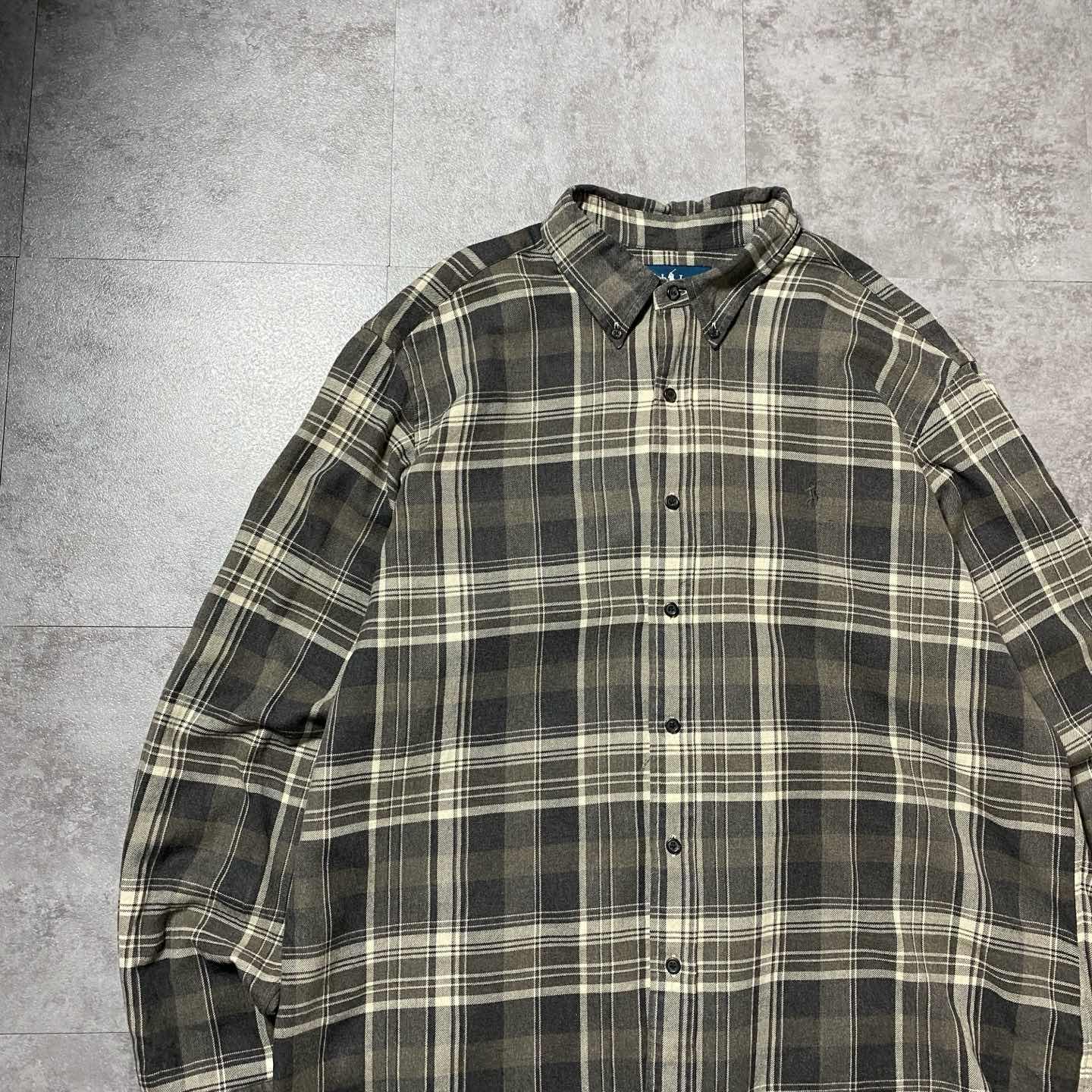 00s ラルフローレン 刺繍ロゴ ポニー チェック ボタンダウン ネルシャツ