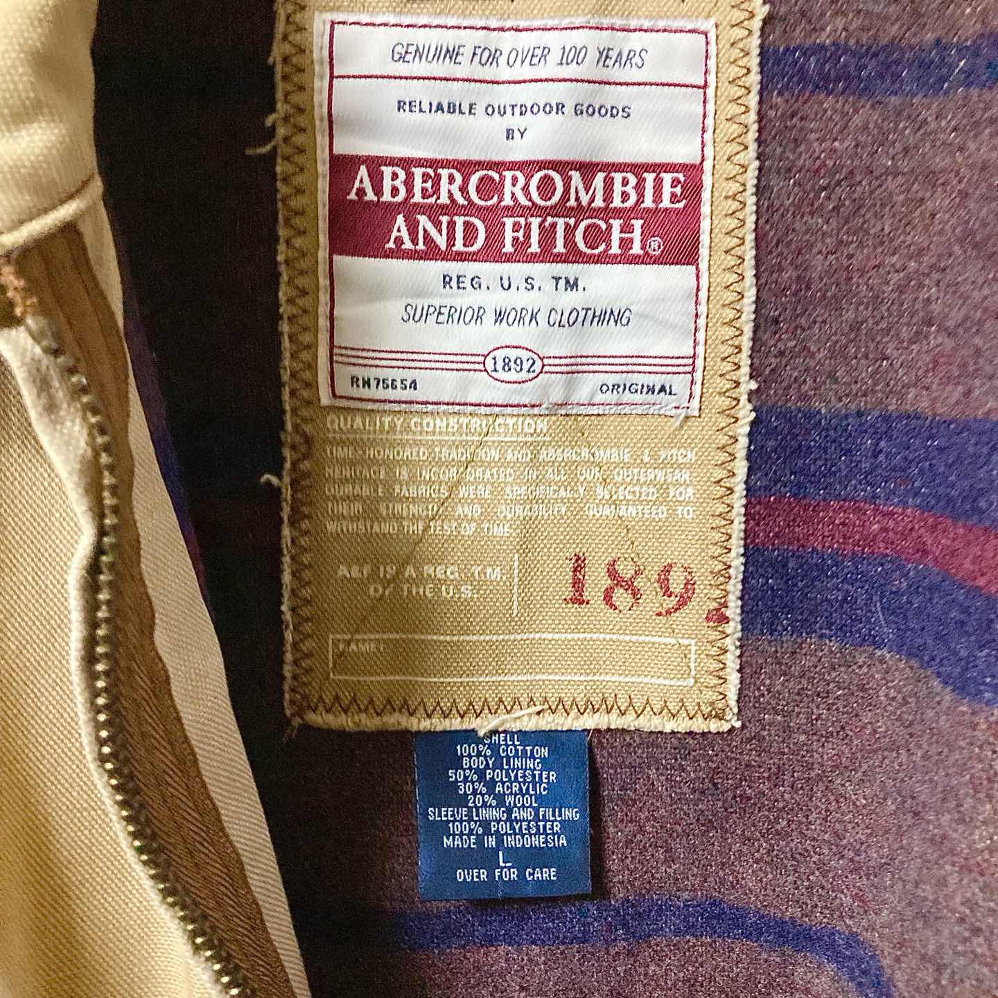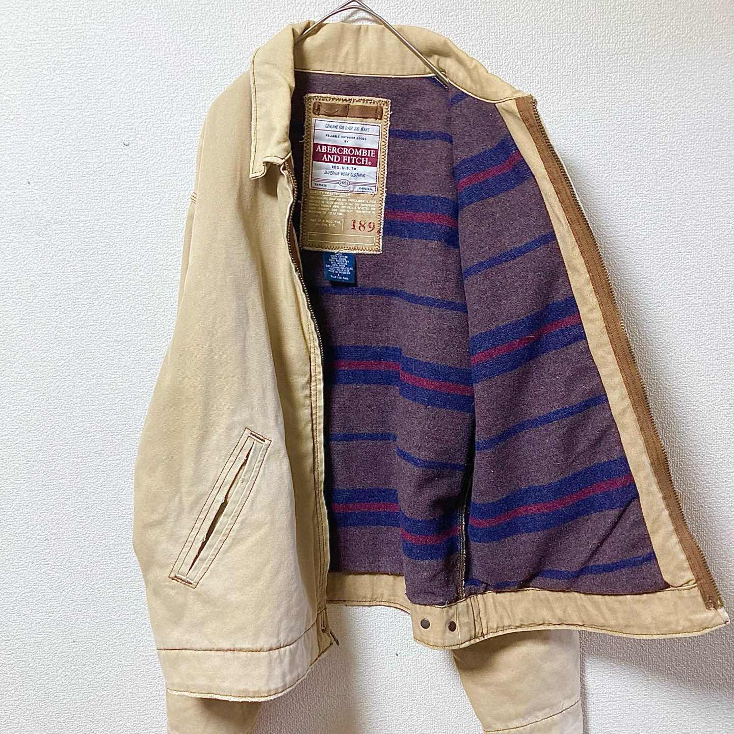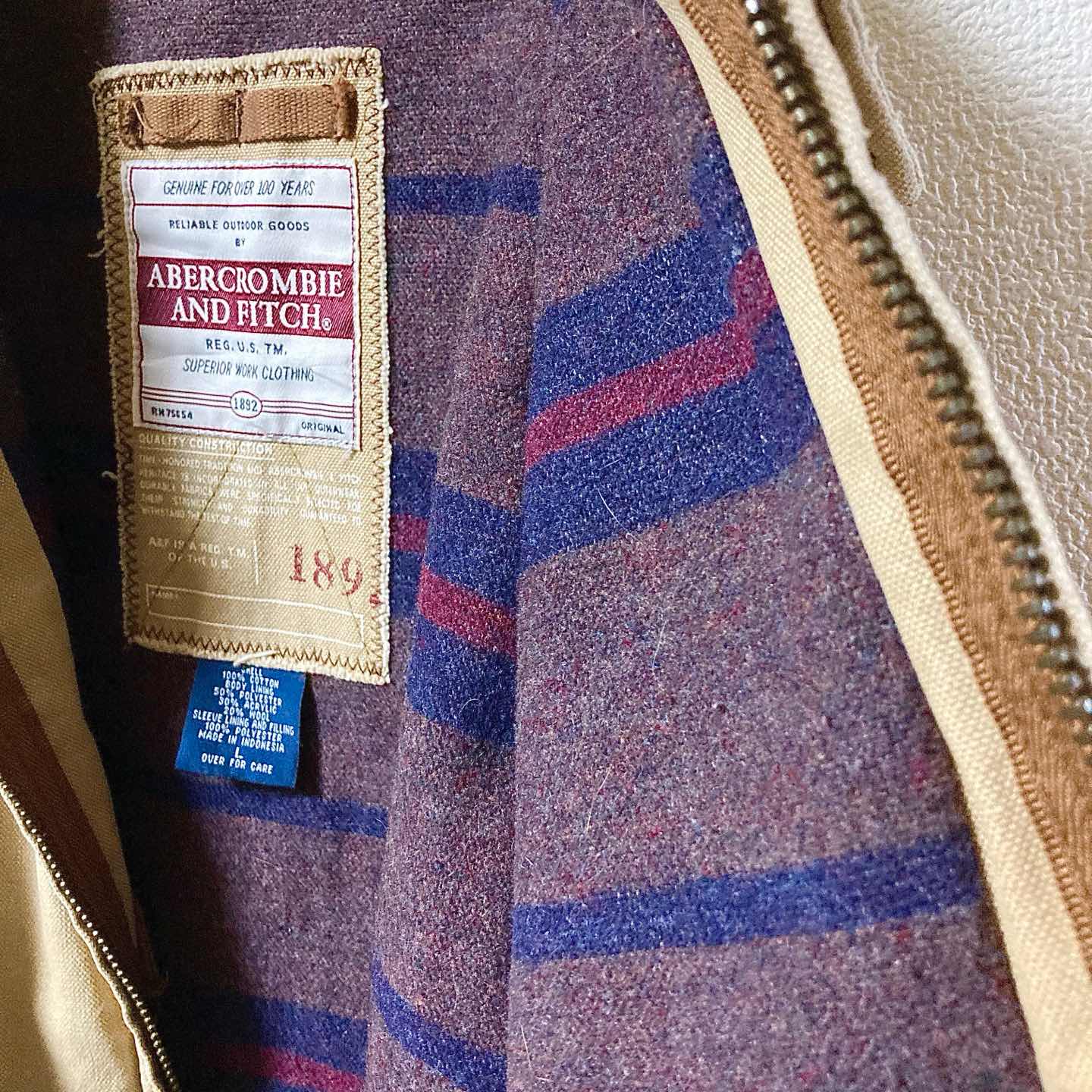 Measured flat: Length 64cm, Pit-to-pit 60cm, Shoulder 50cm. Heavy duck canvas with warm blanket lining. Ecru/cream tone, A&F-marked zip pull. Workwear vibe, pairs great with denim. Condition: Good used. Ships tracked in 1–2 days; packed waterproof + cushioning. #Abercrombie #AandF #DuckJacket #BlanketLined #Workwear #Ecru #Beige #Americana #vintage #90sstyle #ヴィンテージ #ビンテージ