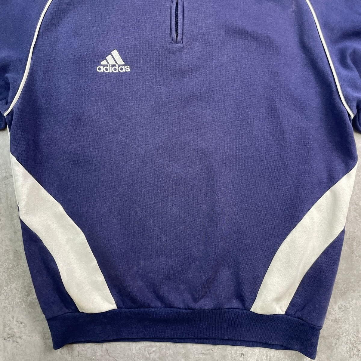 ■00年代 adidas アディダス ハーフジップ スウェットシャツ パフォーマンスロゴ刺繍 メンズL相当 古着 00s Y2K ヴィンテージ VINTAGE フェードネイビー ホワイト【スウェット】/ネイビー 【ブランド】adidas アディダス 【サイズ】表記 M(実寸メンズL相当) ※計測値をご確認ください。 着丈…69 身幅…60 裄丈…79 袖丈(脇下計測)…53 【生産国】中国製 【素材】コットン70%、ポリエステル30% 【状態】全体的にフェードがかっております。 フロント上部に色移り、袖口付近に小さな汚れがあります。 画像にてご確認ください。 【c251119114】 ※古着は洗濯、検品などのケアを行っております。(新品・デッドストックは洗濯していません。) ※モニターの発色により実物と異なる場合がございます。予めご了承ください。 ※ 海外直輸入USED品になります。