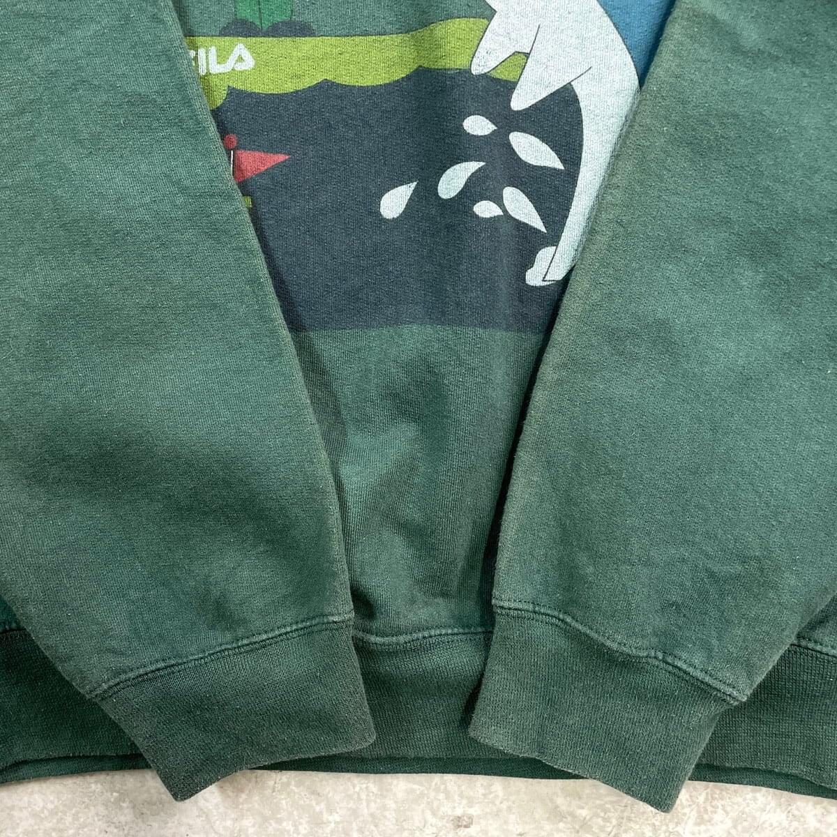 ■FILA フィラ グラフィックプリント スウェットシャツ メンズXL 古着 トレーナー ゴルフ イルカ 裏起毛 深緑色【スウェット】/グリーン 【ブランド】FILA フィラ 【サイズ】表記 XL ※計測値をご確認ください。 着丈…68.5 身幅…63 肩幅…57 袖丈…62.5 【生産国】ホンジュラス製 【素材】コットン50%、ポリエステル50% 【状態】使用感による色褪せがありますが、目立ったダメージや汚れはございません。 画像にてご確認ください。 【c251119105】 ※古着は洗濯、検品などのケアを行っております。(新品・デッドストックは洗濯していません。) ※モニターの発色により実物と異なる場合がございます。予めご了承ください。 ※ 海外直輸入USED品になります。