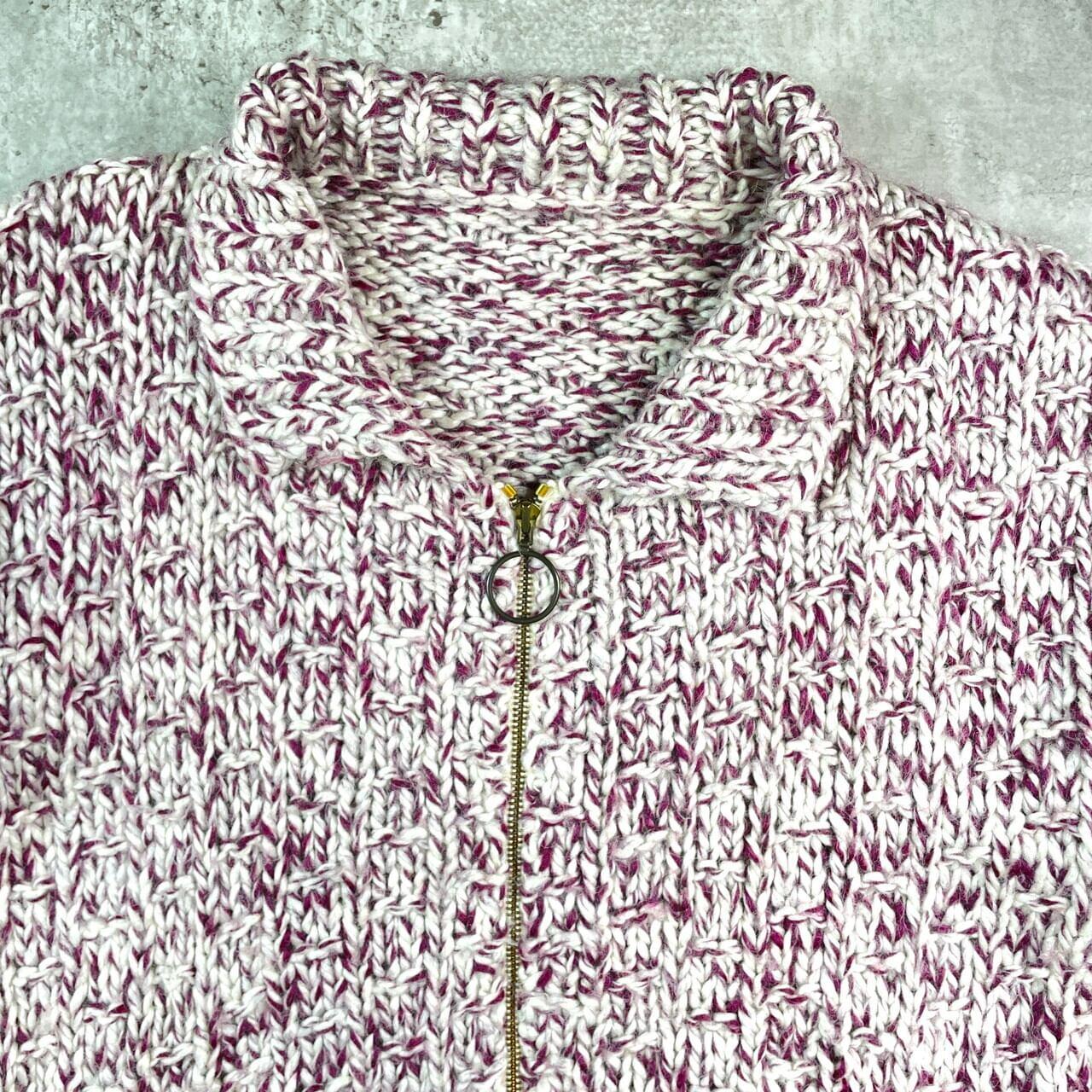 ■80年代 ハンドニット カウチン 襟付き フルジップ ローゲージ ウールニットカーディガン メンズM相当 レディースL相当 古着 80s VINTAGE ヴィンテージ ドライバーズニット ホワイト パープル 白 紫【ニットセーター】/マルチカラー 【サイズ】 不明(着用感メンズM相当 レディースL相当) モデル身長173㎝ ※計測値をご確認ください。 着丈…76 身幅…52 肩幅…56 袖丈…61 【生産国】不明 【素材】不明 おそらくウールかと思われます。 【状態】ジップトップに割れがございますが可動は問題ございません。 その他多少の使用感は御座いますが、目立ったダメージや汚れは御座いません。 画像にてご確認ください。 【c251108014】 ※古着は洗濯、検品などのケアを行っております。(新品・デッドストックは洗濯していません。) ※モニターの発色により実物と異なる場合がございます。予めご了承ください。 ※ 海外直輸入USED品になります。