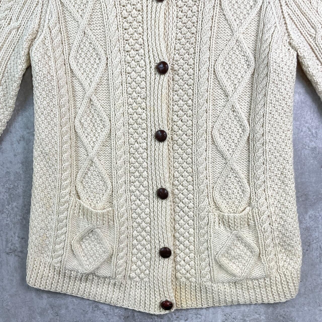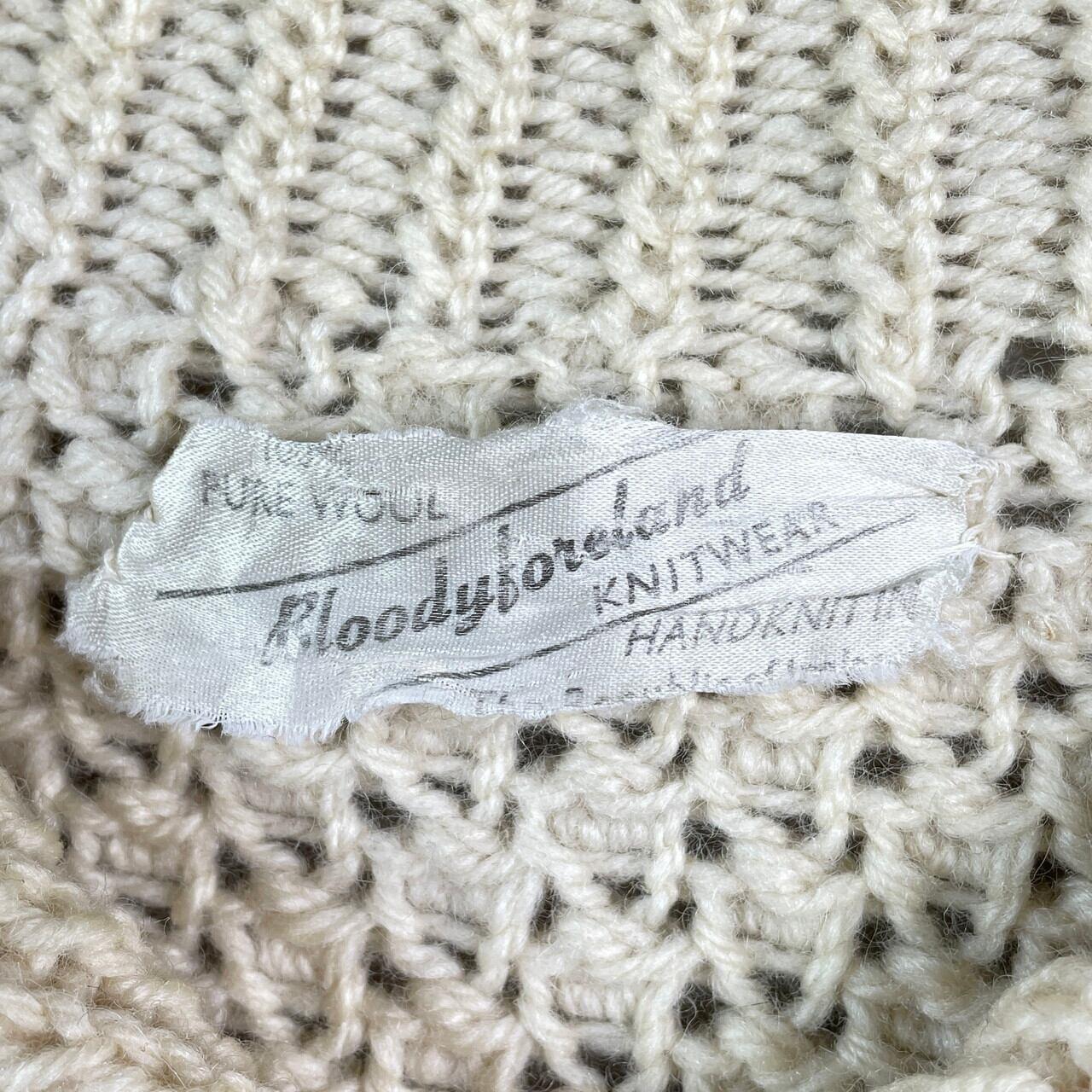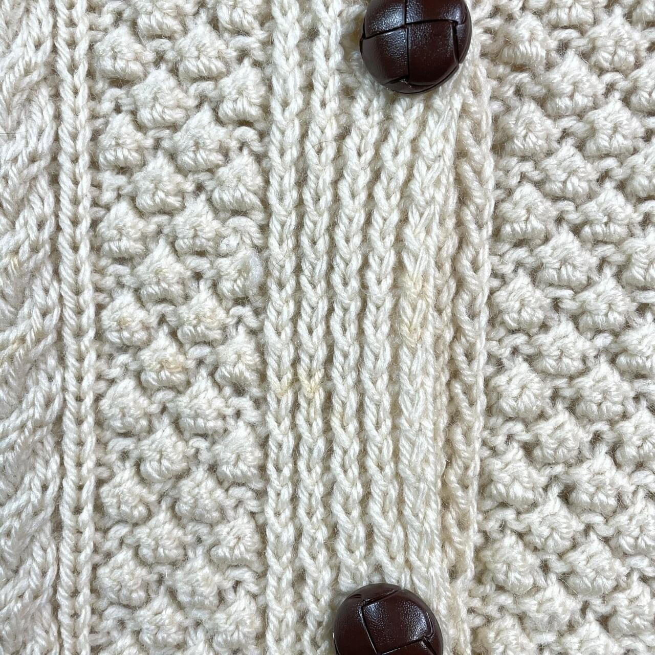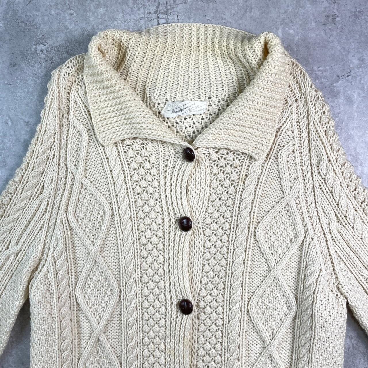 ■ヴィンテージ Bloodyforeland ハンドニット フィッシャーマンニットカーディガン レディース2XL相当 メンズXL相当 古着 VINTAGE アランセーター ケーブル編み 白【ニットセーター】/ホワイト 【ブランド】Bloodyforeland 【サイズ】表記 不明(着用感レディース2XL相当 メンズXL相当) ※計測値をご確認ください。 着丈…74 身幅…54 裄丈…84 袖丈(脇下計測)…47 【生産国】不明 おそらくアイルランド製かと思われます。 【素材】ピュアウール 【状態】全体的に縮み、フロントや襟の内側に汚れなどがございます。 画像にてご確認ください。 【c251104005】 ※古着は洗濯、検品などのケアを行っております。(新品・デッドストックは洗濯していません。) ※モニターの発色により実物と異なる場合がございます。予めご了承ください。 ※ 海外直輸入USED品になります。