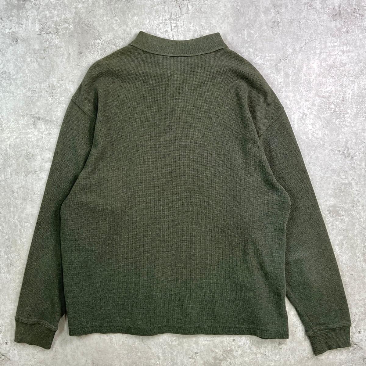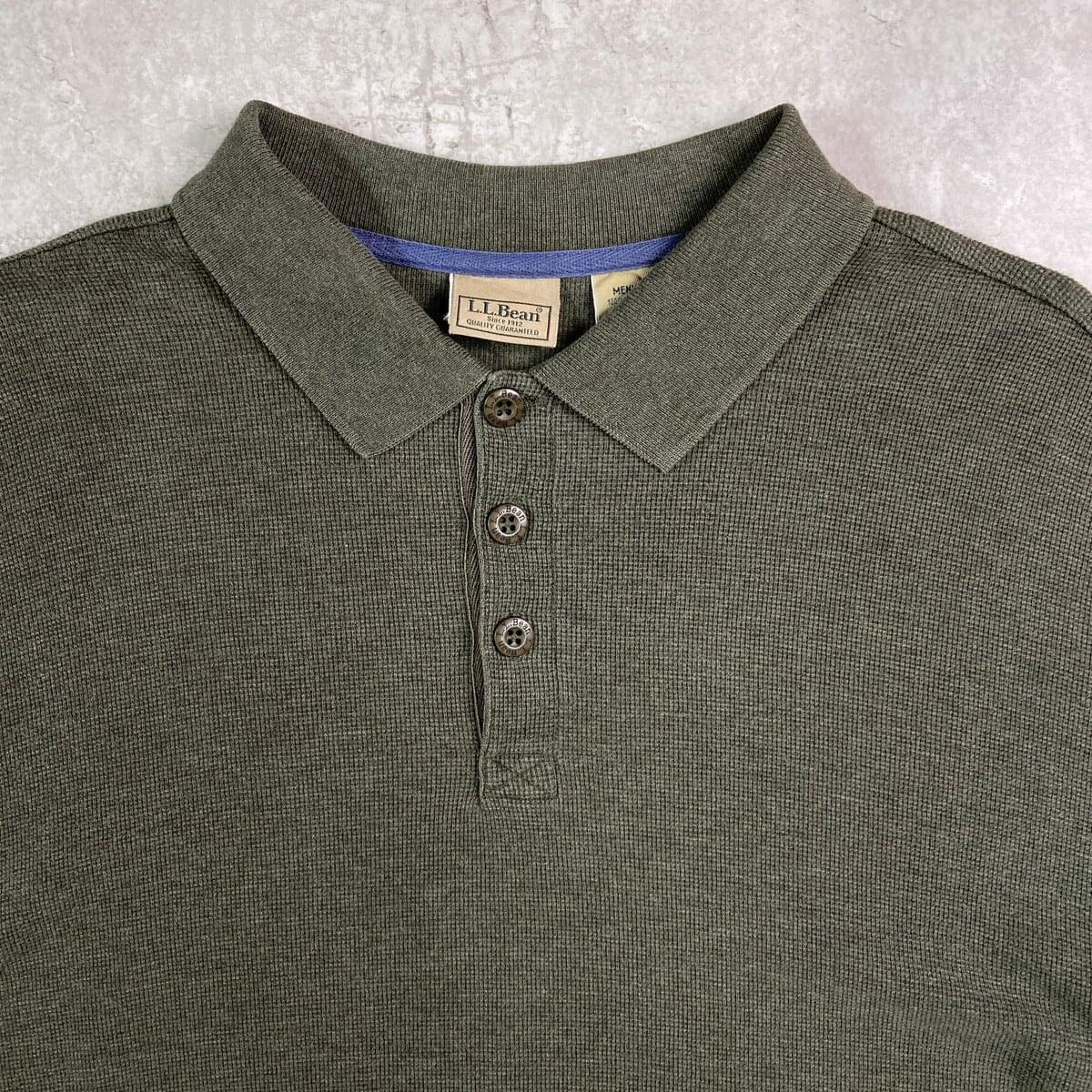 ■L.L.Bean エルエルビーン ポロシャツ メンズL 古着 深緑色【ポロシャツ・ラガーシャツ】/グリーン ◎ワッフル生地に近い作りになっております。 【ブランド】L.L.Bean エルエルビーン 【サイズ】表記 L-REG ※計測値をご確認ください。 着丈…70 身幅…65 肩幅…59 袖丈…62 【生産国】タイ製 【素材】コットン100% 【状態】使用感はありますが、目立ったダメージや汚れはございません。 画像にてご確認ください。 【c251026109】 ※古着は洗濯、検品などのケアを行っております。(新品・デッドストックは洗濯していません。) ※モニターの発色により実物と異なる場合がございます。予めご了承ください。 ※ 海外直輸入USED品になります。