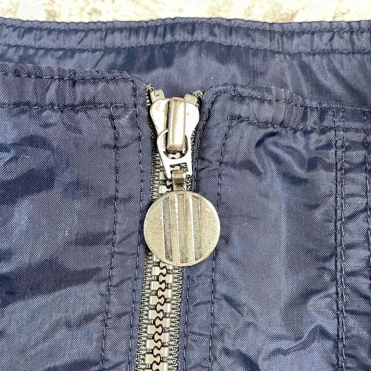 90s チャンピオン 刺繍ロゴ ラインリブ ネイビー ナイロンプルオーバー
