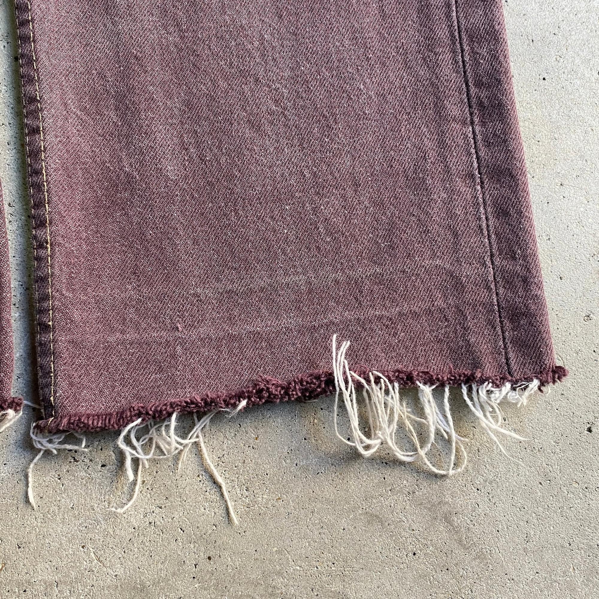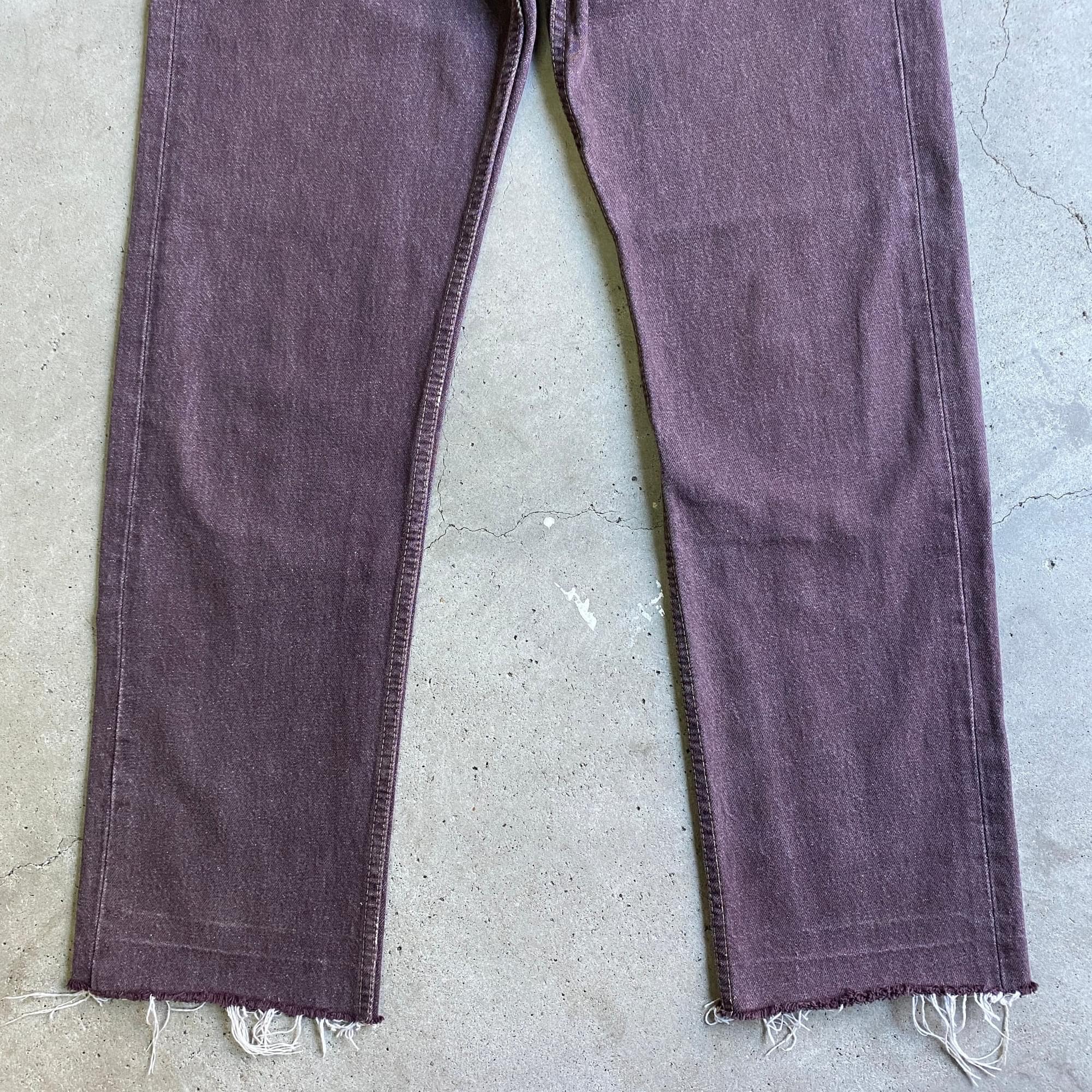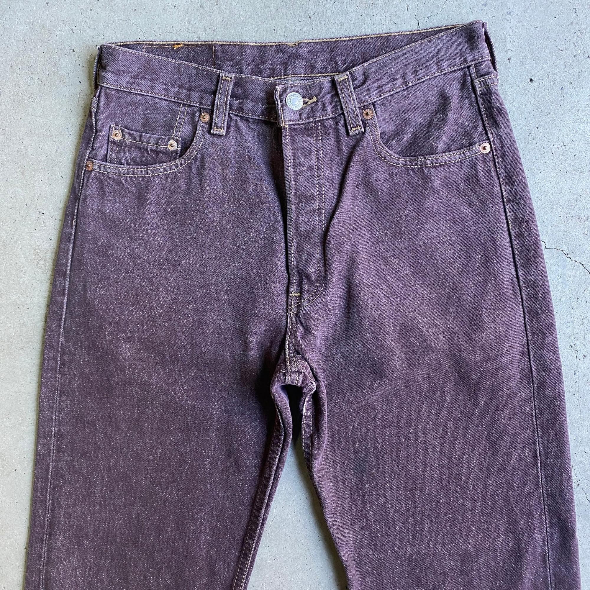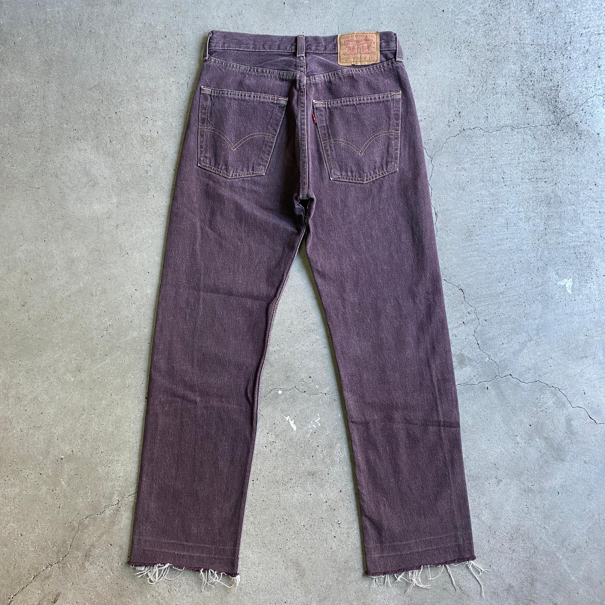 ■ 90年代 Levi's リーバイス先染め パープル 501 デニムパンツ W30 古着 カットオフ ユーロ スペイン製 紫色 ストレート 90s ビンテージ ヴィンテージ 【ブランド】Levi's リーバイス 【サイズ】表記W30 L34(実寸おおよそL30) 裾がカットオフされています。 ※計測値をご確認ください。 ウエスト(平置き×2)…74 ワタリ幅…30.5 股上…27.5 股下…76 裾幅…20.5 【生産国】スペイン製 【素材】コットン100% 【状態】股部分に多少のスレ等の使用感はございますが、その他目立った汚れやダメージ等は無くまだまだ長く愛用していただけます。 画像にてご確認ください。 【c251023153】 ※古着は洗濯、検品などのケアを行っております。(新品・デッドストックは洗濯していません。) ※モニターの発色により実物と異なる場合がございます。予めご了承ください。 ※ 海外直輸入USED品になります。