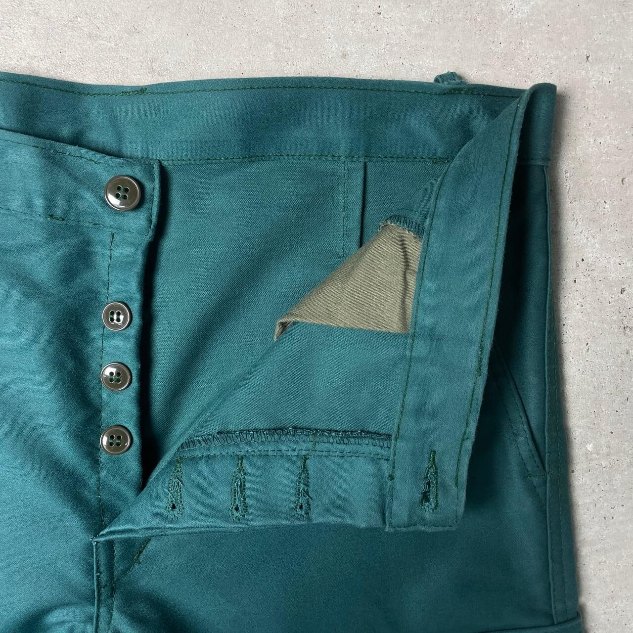 ■グリーンモールスキンパンツ フレンチワークパンツ カーゴパンツ 片ポケ メンズW35 古着 ユーロワークパンツ 緑色【ロングパンツ】/グリーン ◎フレンチワークウェアの中でも特に人気の高いモールスキンパンツ 年代は比較的新しい物になりますが、珍しいグリーンカラー、ほとんど使用感の無い美品です。 【サイズ】表記 48(計測値 W35相当) ※計測値をご確認ください。 ウエスト(平置き×2)…91 ワタリ幅…32.5 股上…30 股下…81 裾幅…21 【生産国】不明 【素材】コットン100% 【状態】使用感のほとんど無い美品です。 【c251022155】 ※古着は洗濯、検品などのケアを行っております。(新品・デッドストックは洗濯していません。) ※モニターの発色により実物と異なる場合がございます。予めご了承ください。 ※ 海外直輸入USED品になります。