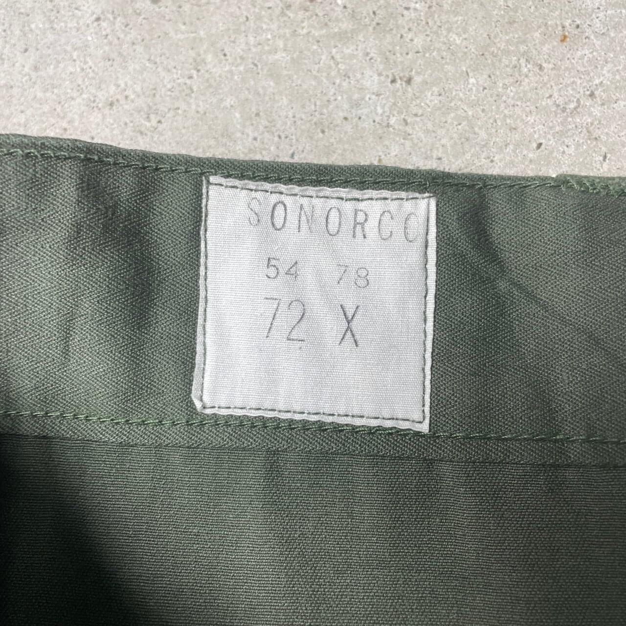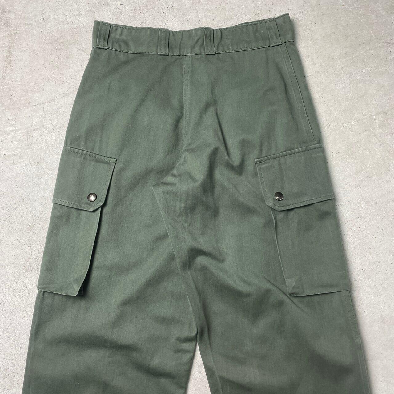 ■フランス軍 HBT アビエイターカーゴパンツ メンズW28相当 古着 ヴィンテージ VINTAGE ヘリンボーンツイル ユーロミリタリーパンツ フィールドパンツ カーキグリーン オリーブグリーン 【ミリタリーパンツ】/カーキグリーン 【サイズ】表記 72 X ※計測値をご確認ください。 ウエスト(平置き×2)…72 ワタリ幅…30 股上…28 股下…85 裾幅…18.5(ドローコード付き) 【生産国】不明 【素材】コットン 【状態】多少の色あせや擦れなど使用感が御座います。 画像にてご確認ください。 【c251022153】 ※古着は洗濯、検品などのケアを行っております。(新品・デッドストックは洗濯していません。) ※モニターの発色により実物と異なる場合がございます。予めご了承ください。 ※ 海外直輸入USED品になります。