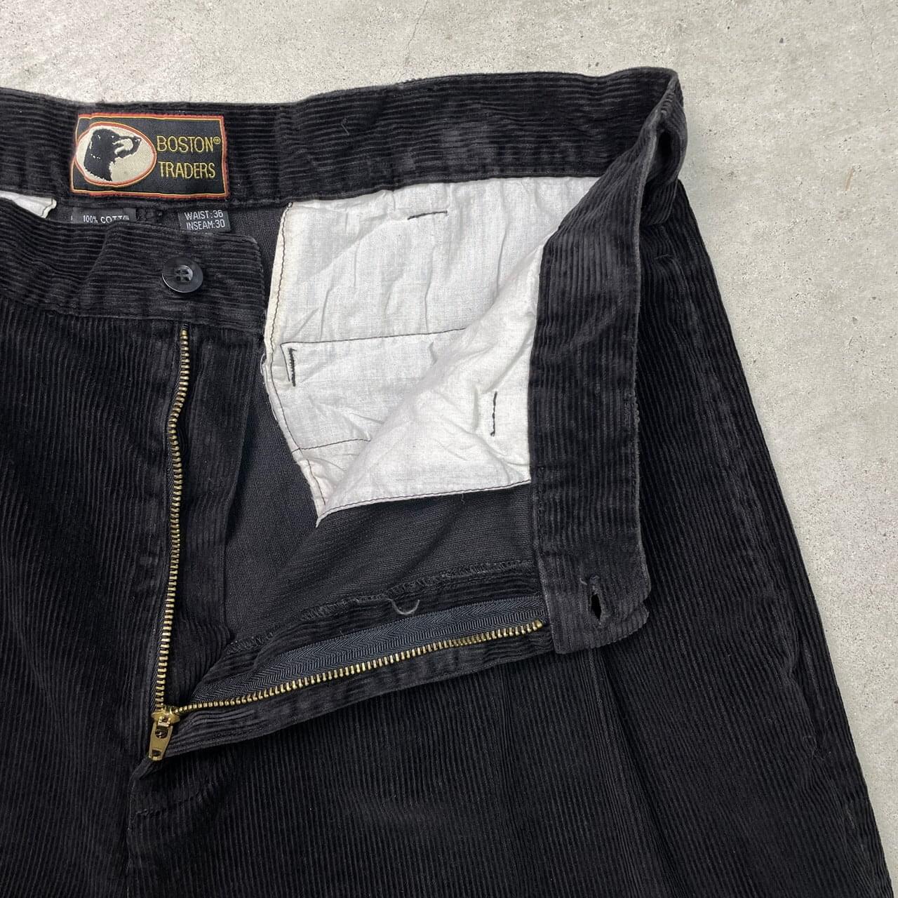 ■BOSTON TRADERS 2タック ワイドテーパード コーデュロイパンツ メンズW35相当 古着 裾ダブル 黒【コーデュロイパンツ】/ブラック 【ブランド】BOSTON TRADERS ボストントレーダーズ 【サイズ】表記 36×30(実寸W35相当) ※計測値をご確認ください。 ウエスト(平置き×2)…90 ワタリ幅…35 股上…34 股下…76 裾幅…22.5 【生産国】中国製 【素材】コットン100% 【状態】多少の使用感は御座いますが、目立ったダメージや汚れは御座いません。 画像にてご確認ください。 【c251018015】 ※古着は洗濯、検品などのケアを行っております。(新品・デッドストックは洗濯していません。) ※モニターの発色により実物と異なる場合がございます。予めご了承ください。 ※ 海外直輸入USED品になります。