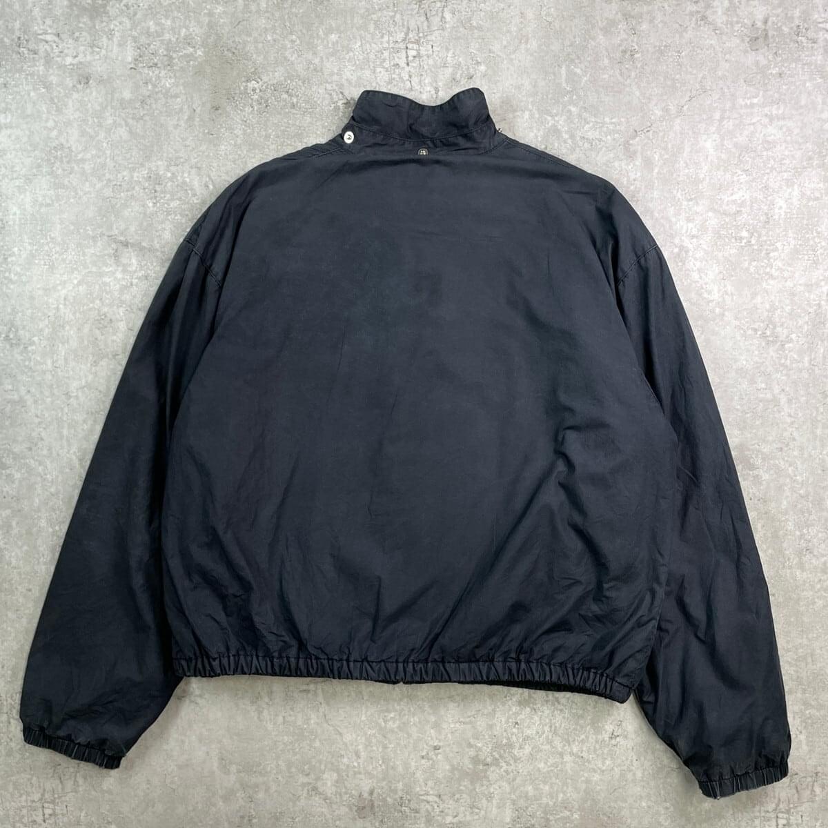 90s チャンピオン 刺繍ロゴ ラインリブ ネイビー ナイロンプルオーバー