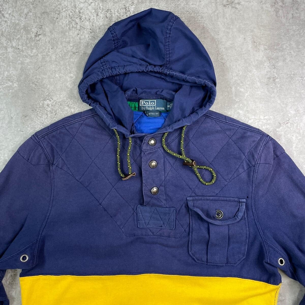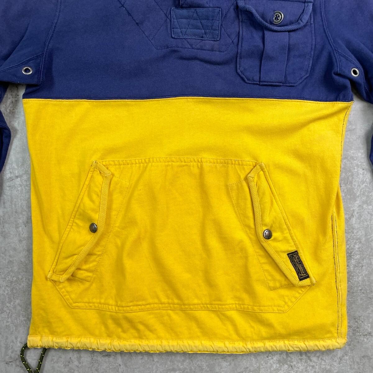 ■90年代 Polo by Ralph Lauren ポロバイラルフローレン スウェット アノラックパーカー メンズS レディースS~M相当 古着 90s VINTAGE ヴィンテージ タロンジップ ドローコード付き ツートンカラーネイビー イエロー【スウェットシャツ】/マルチカラー 【ブランド】Polo by Ralph Lauren ポロバイラルフローレン 【サイズ】表記 S ※計測値をご確認ください。 着丈…71.5 身幅…51.5 肩幅…44.5 袖丈…63 【生産国】フィリピン製 【素材】コットン100% 【状態】全体的に使用感による色褪せがございます。 袖に変色があります。 フロント左胸ポケット付近に小穴が空いています。 画像にてご確認ください。 【c251017102】 ※古着は洗濯、検品などのケアを行っております。(新品・デッドストックは洗濯していません。) ※モニターの発色により実物と異なる場合がございます。予めご了承ください。 ※ 海外直輸入USED品になります。