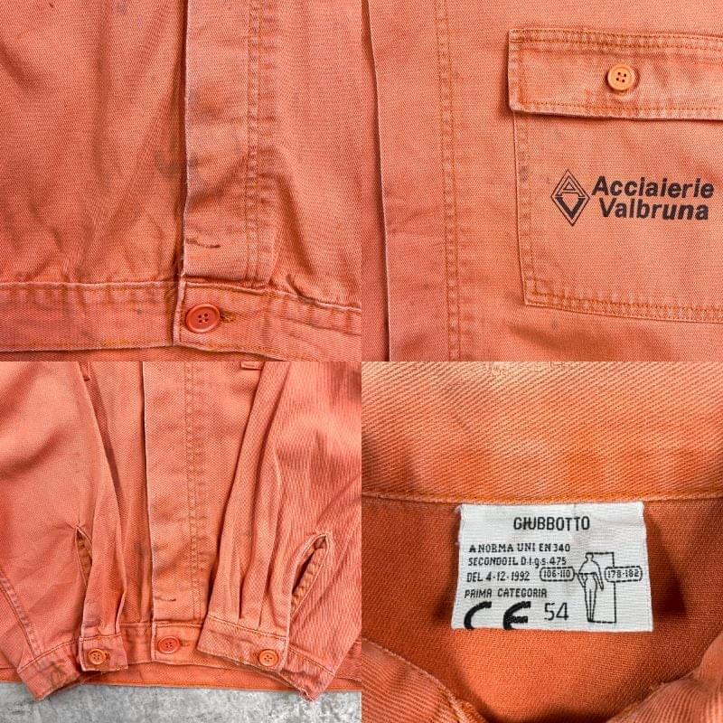 ■GIUBBOTTO ユーロワークジャケット 企業ロゴプリント メンズXL相当 古着 ラグランスリーブ ダブルポケット サーモンピンク【ワークジャケット】/ピンク 【ブランド】GIUBBOTTO 【サイズ】表記 54(実寸メンズL相当) ※計測値をご確認ください。 着丈…64 身幅…62 肩幅…54 袖丈…58 【生産国】不明 【素材】コットン100% 【状態】全体的に当時のワーク感ある汚れがございます。 バックサイド裾付近にダメージがあります。 画像にてご確認ください。 【c251017101】 ※古着は洗濯、検品などのケアを行っております。(新品・デッドストックは洗濯していません。) ※モニターの発色により実物と異なる場合がございます。予めご了承ください。 ※ 海外直輸入USED品になります。