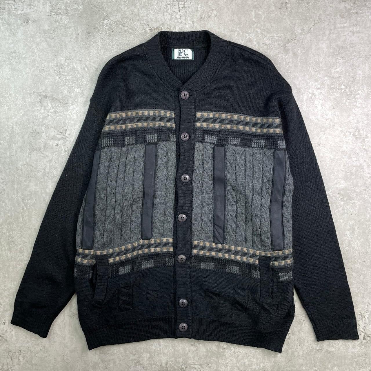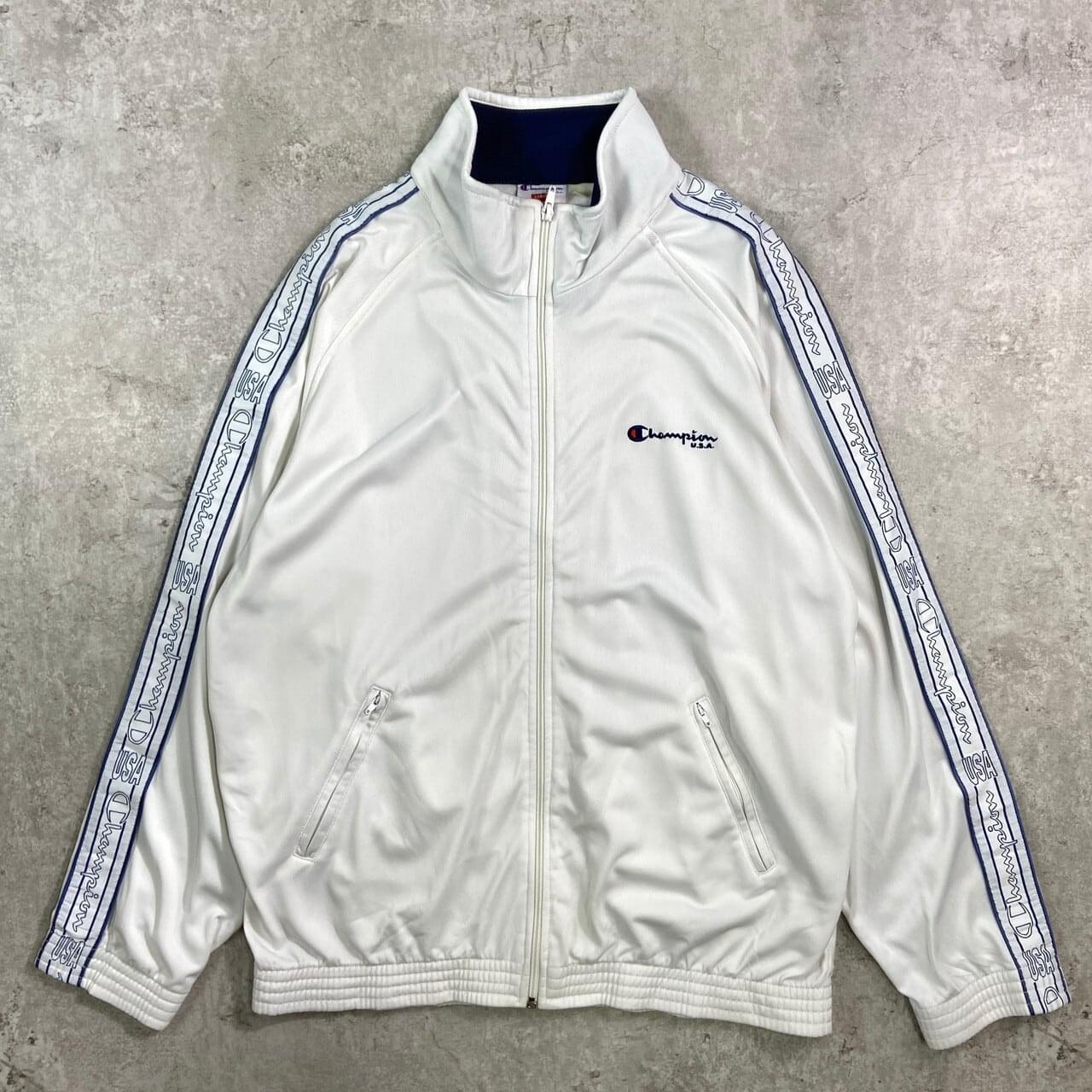 90s チャンピオン 刺繍ロゴ ラインリブ ネイビー ナイロンプルオーバー