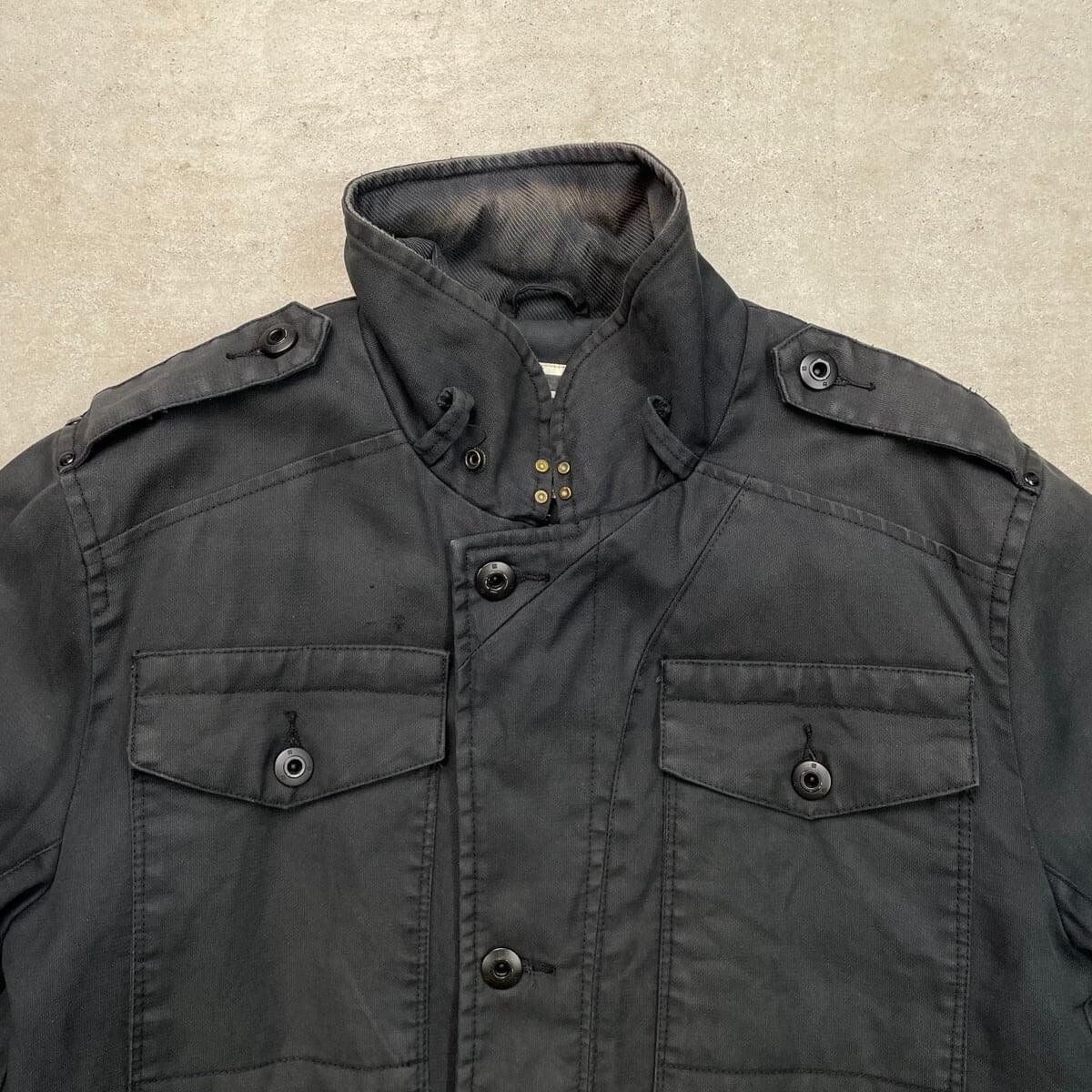 ■古着 G-STAR RAW ワークジャケット ミリタリージャケット 00年代 00s Y2K VINTAGE ヴィンテージ メンズXL相当 USED チャコールブラック【ミリタリージャケット】/ブラック 【ブランド】G-STAR RAW 【サイズ】表記 XL(実寸メンズL相当) ※計測値をご確認ください。 着丈…85 身幅...61 肩幅…48.5 袖丈…67 【生産国】中国製 【素材】コットン100% 【状態】全体的に色あせや薄汚れ、擦れがございます。 襟元、フロント上部に若干のダメージがあります。 画像にてご確認ください。 【c251209101】 ※古着は洗濯、検品などのケアを行っております。(新品・デッドストックは洗濯していません。) ※モニターの発色により実物と異なる場合がございます。予めご了承ください。 ※ 海外直輸入USED品になります。