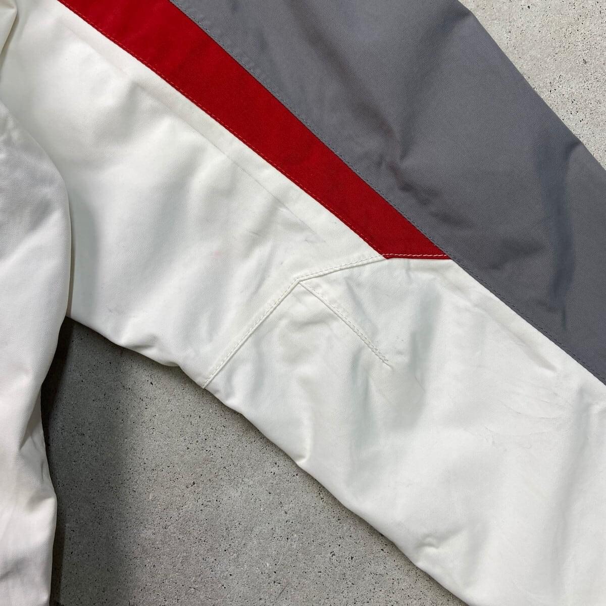 【XL】90s チャンピオン 刺繍ロゴ ラインリブ レッド ナイロンプルオーバー