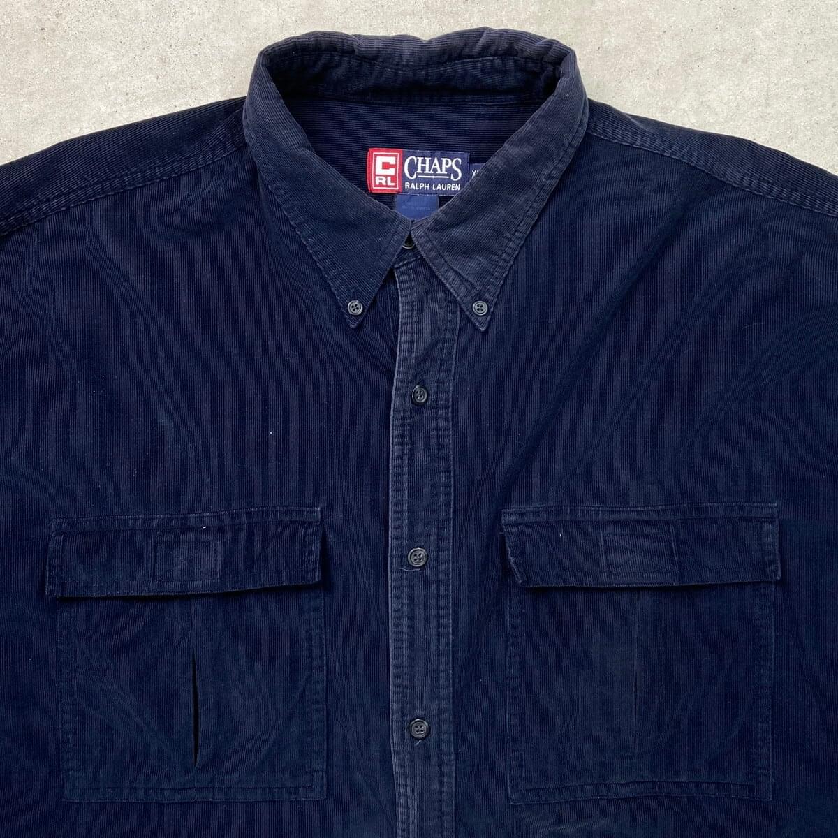 ■古着 CHAPS RALPH LAUREN チャップス コーデュロイシャツ メンズXL 90年代 90s VINTAGE ヴィンテージ USED 細畝 B.D シャツ ボタンダウンシャツ ダブルポケット 紺色【長袖シャツ】/ネイビー 【ブランド】CHAPS RALPH LAUREN チャップス 【サイズ】表記 XL ※計測値をご確認ください 着丈…80 身幅…70.5 肩幅…58 袖丈…61 【素材】コットン100% 【生産国】インドネシア製 【状態】多少の使用感ございますが、目立ったダメージ等は無くまだまだ長く愛用していただけます。 画像にてご確認ください。 【c251208101】 ※古着は洗濯、検品などのケアを行っております。(新品・デッドストックは洗濯していません。) ※モニターの発色により実物と異なる場合がございます。予めご了承ください。 ※ 海外直輸入USED品になります。