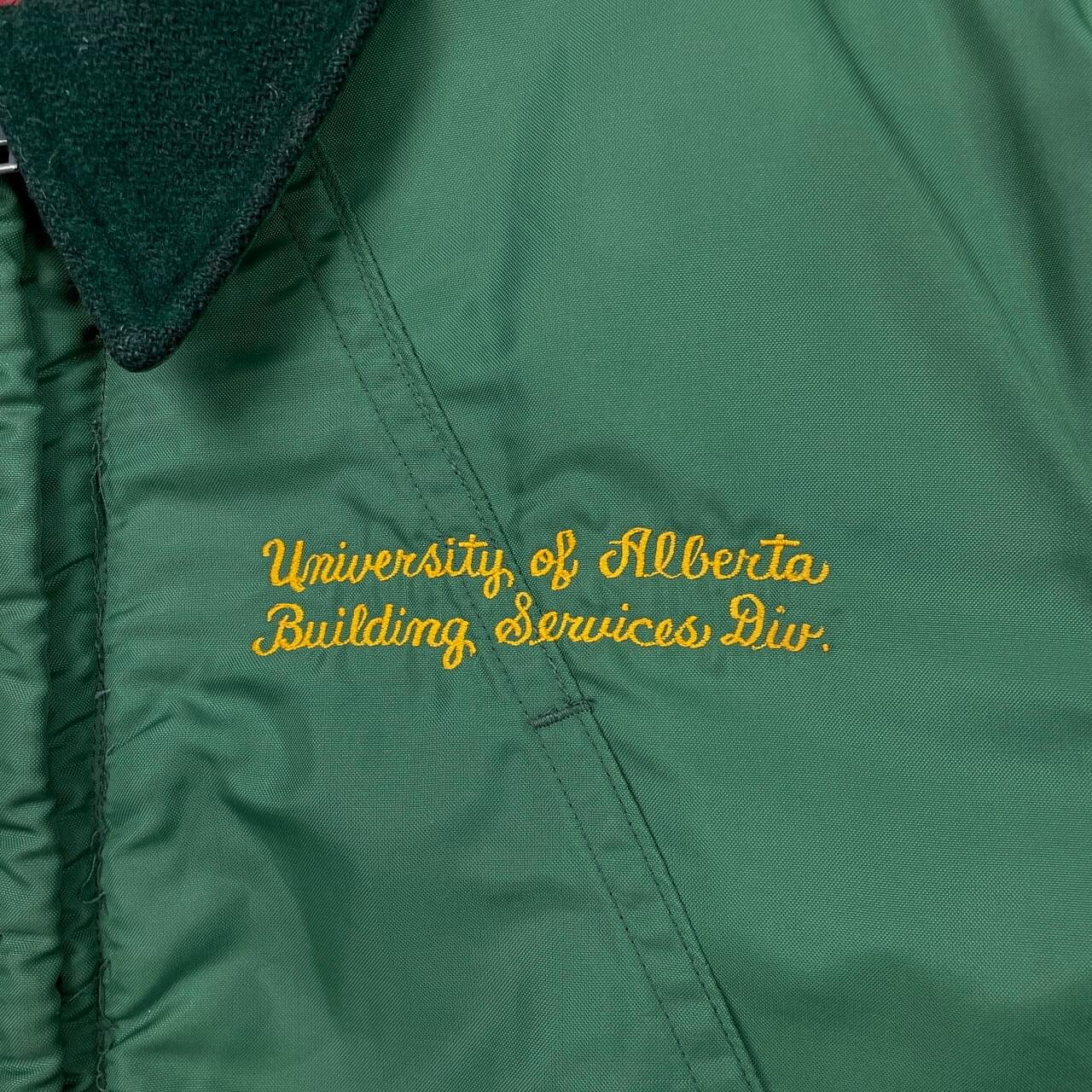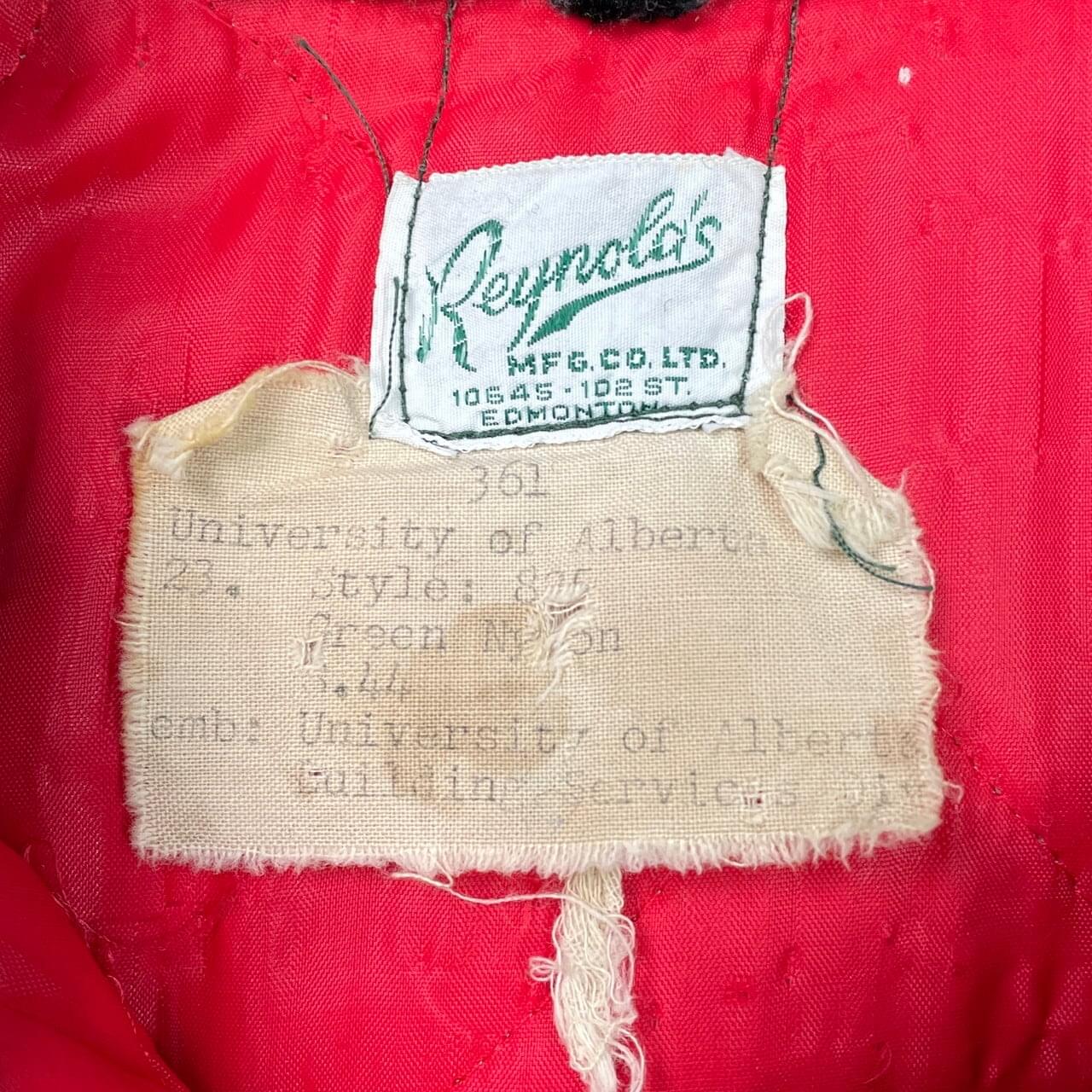 ■古着 Reynola’s カレッジ刺繍 ナイロンジャケット メンズXL相当 70年代 70s VINTAGE ヴィンテージ 古着 カデッドコート University of Alberta アルバータ大学 ウール襟 中綿入り キルティングライナー ACMEジッパー 緑【ナイロンジャケット】/グリーン 【ブランド】Reynola’s 【サイズ】不明(着用感メンズXL相当) ※計測値をご確認ください。 着丈…89 身幅…65 肩幅…52 袖丈…66 【生産国】不明 【素材】不明 おそらくコットンとポリエステルの混紡かと思われます。 【状態】フード欠品、左袖口に変色、バックにひっかき傷などがございます。 画像にてご確認ください。 【c251207009】 ※古着は洗濯、検品などのケアを行っております。(新品・デッドストックは洗濯していません。) ※モニターの発色により実物と異なる場合がございます。予めご了承ください。 ※ 海外直輸入USED品になります。