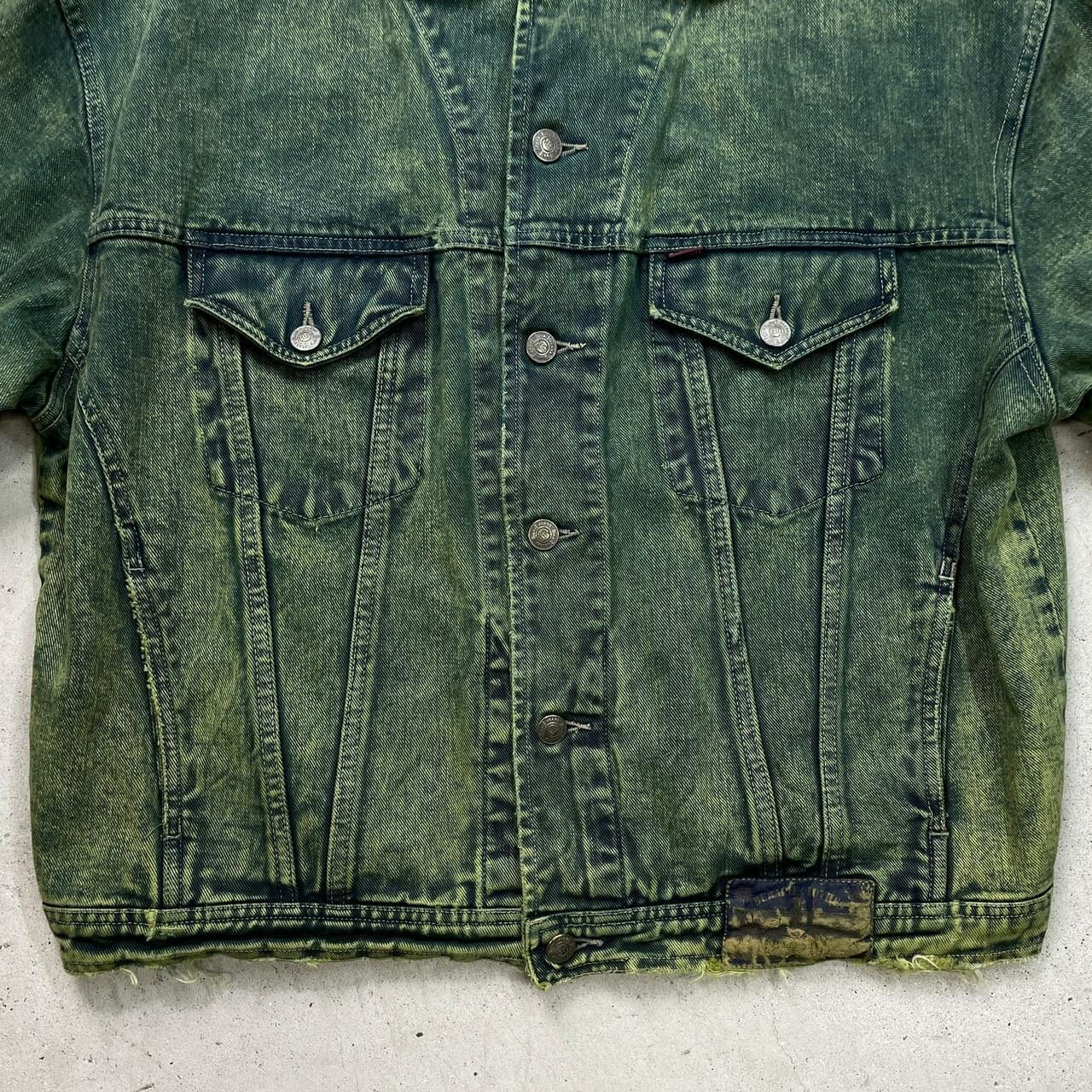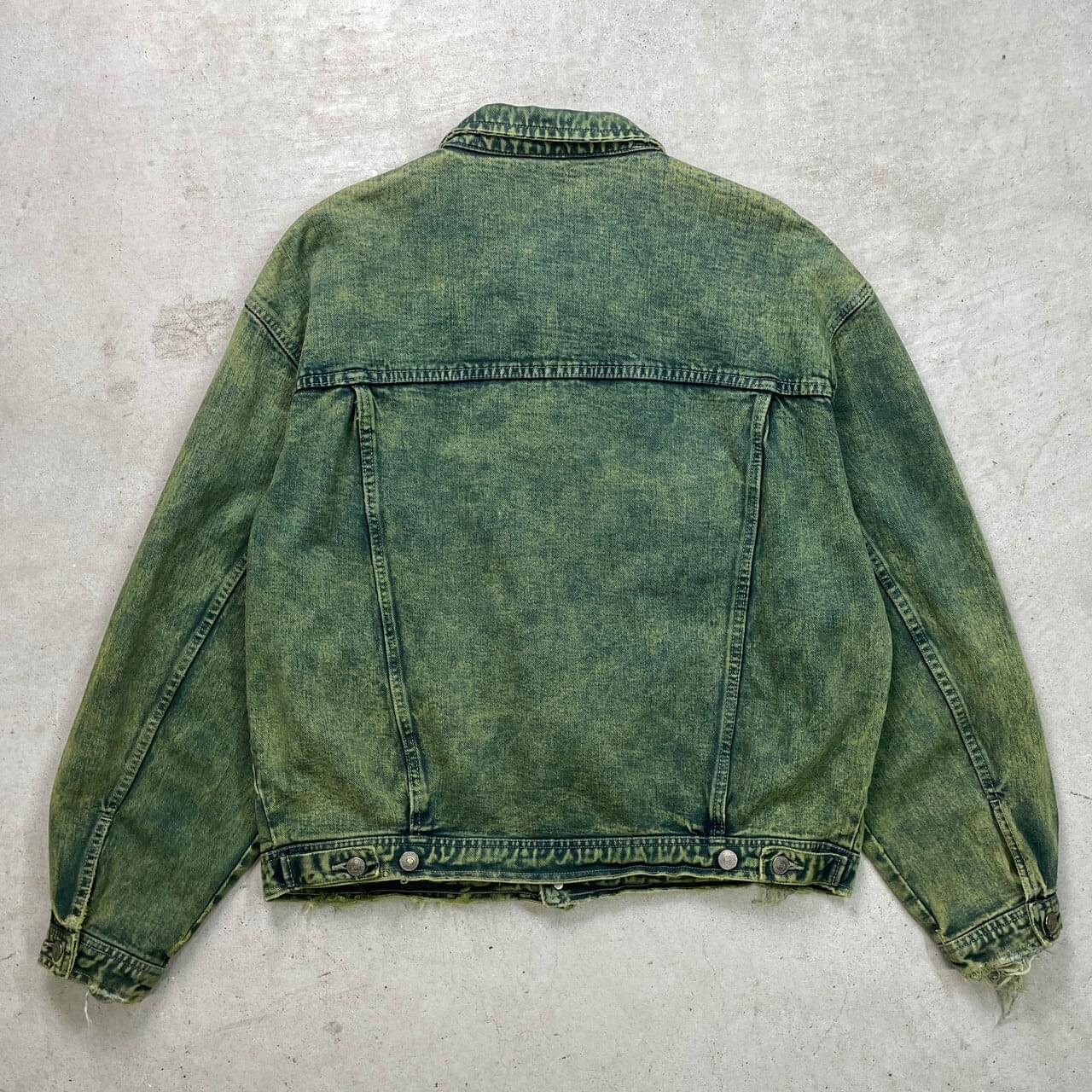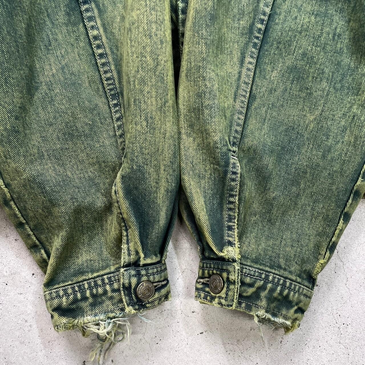 ■古着 BIG WIT カラーデニムジャケット メンズXL相当 USED トラッカージャケット 襤褸 ボロ フェードグリーン 緑【デニムジャケット】/グリーン 【ブランド】 BIG WIT 【サイズ】表記 52(着用感メンズXL相当) ※計測値をご確認ください。 着丈…65 身幅…65 肩幅…59 袖丈…59 【生産国】不明 【素材】不明 おそらくコットンかと思われます。 【状態】袖口・裾・襟先などに生地擦れがございます。 画像にてご確認ください。 【c251206004】 ※古着は洗濯、検品などのケアを行っております。(新品・デッドストックは洗濯していません。) ※モニターの発色により実物と異なる場合がございます。予めご了承ください。 ※ 海外直輸入USED品になります。