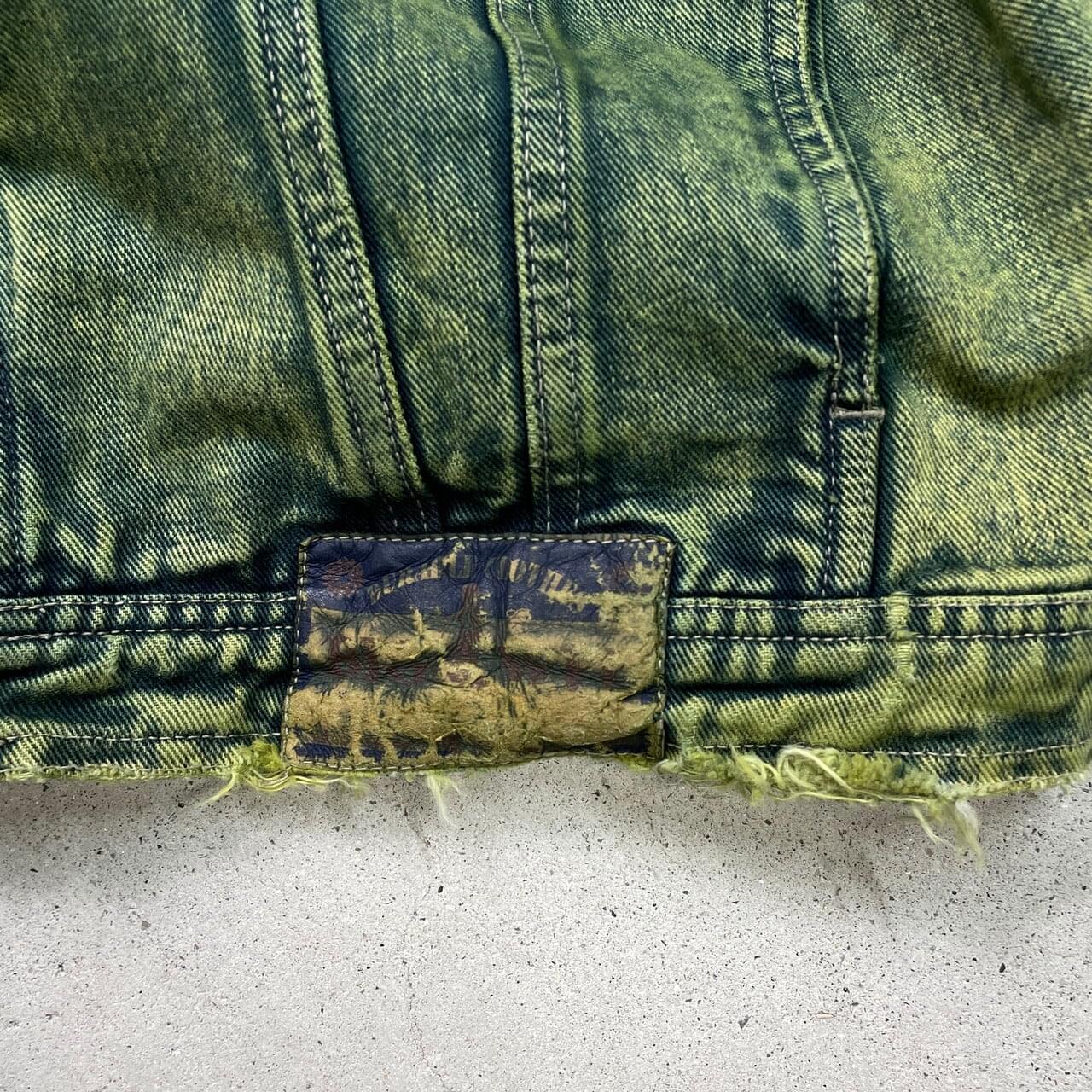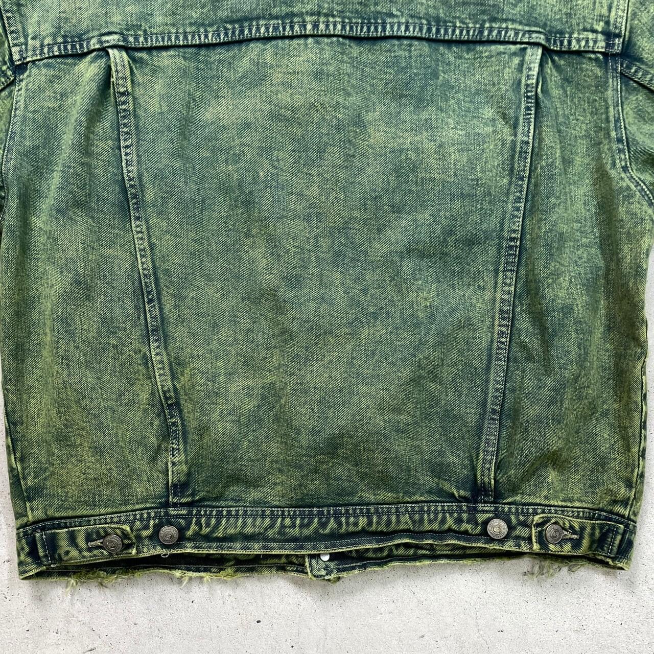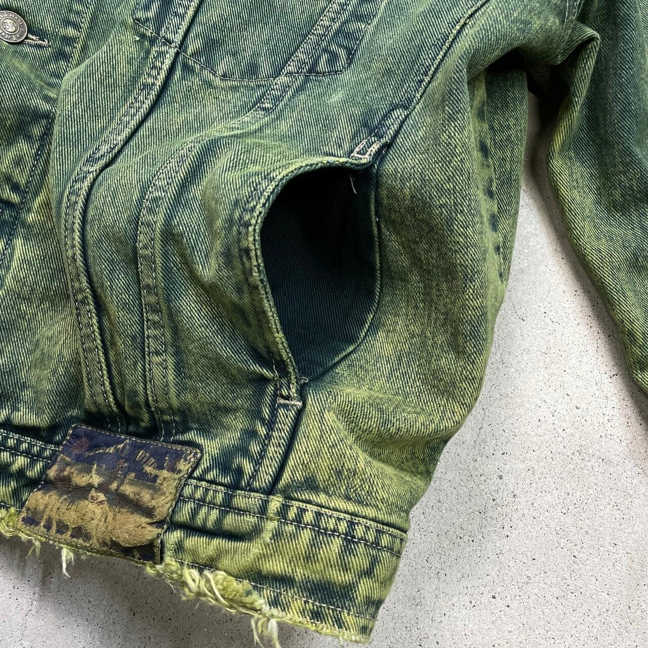 ■古着 BIG WIT カラーデニムジャケット メンズXL相当 USED トラッカージャケット 襤褸 ボロ フェードグリーン 緑【デニムジャケット】/グリーン 【ブランド】 BIG WIT 【サイズ】表記 52(着用感メンズXL相当) ※計測値をご確認ください。 着丈…65 身幅…65 肩幅…59 袖丈…59 【生産国】不明 【素材】不明 おそらくコットンかと思われます。 【状態】袖口・裾・襟先などに生地擦れがございます。 画像にてご確認ください。 【c251206004】 ※古着は洗濯、検品などのケアを行っております。(新品・デッドストックは洗濯していません。) ※モニターの発色により実物と異なる場合がございます。予めご了承ください。 ※ 海外直輸入USED品になります。
