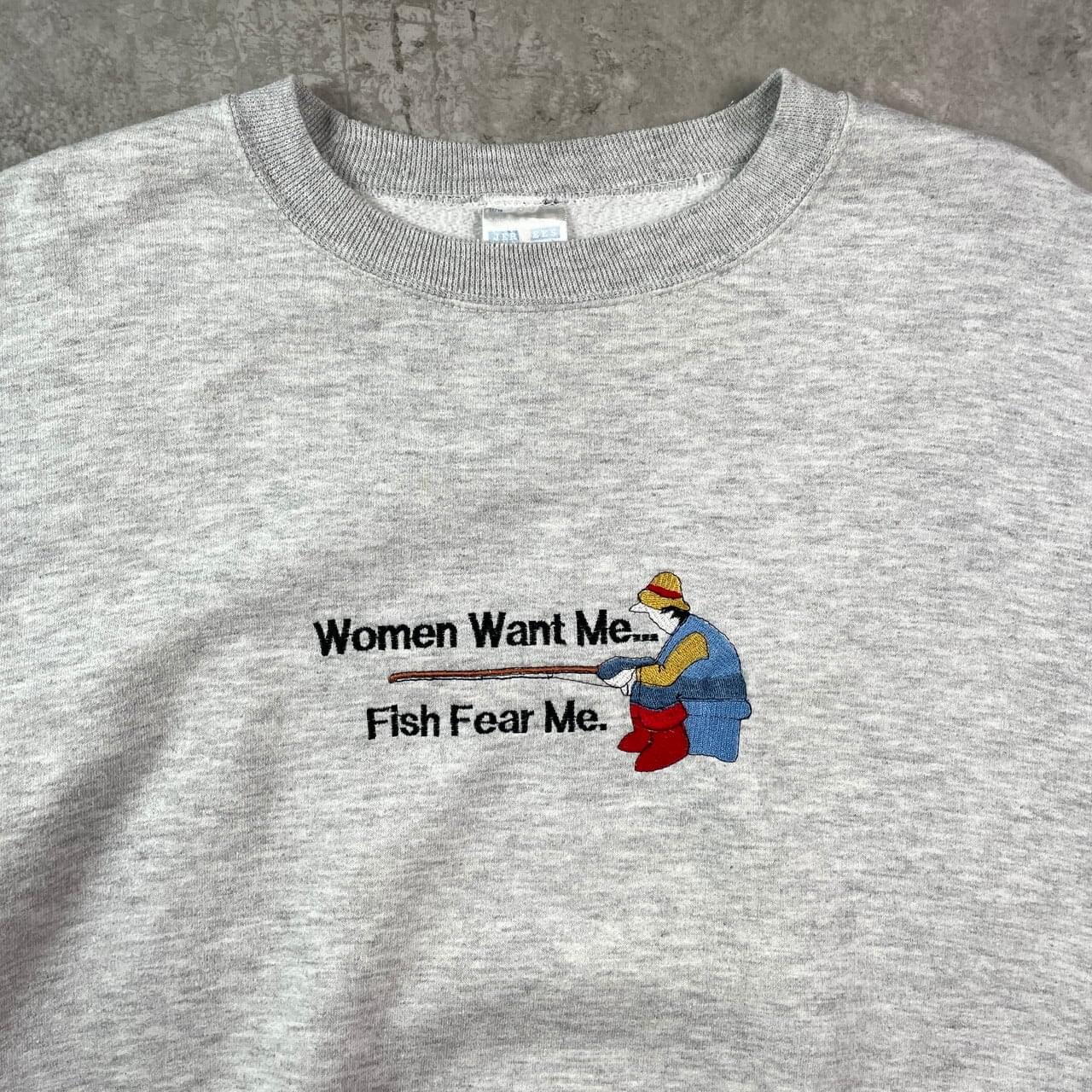 00年代 ジョーク メッセージ刺繍 スウェットシャツ メンズXL