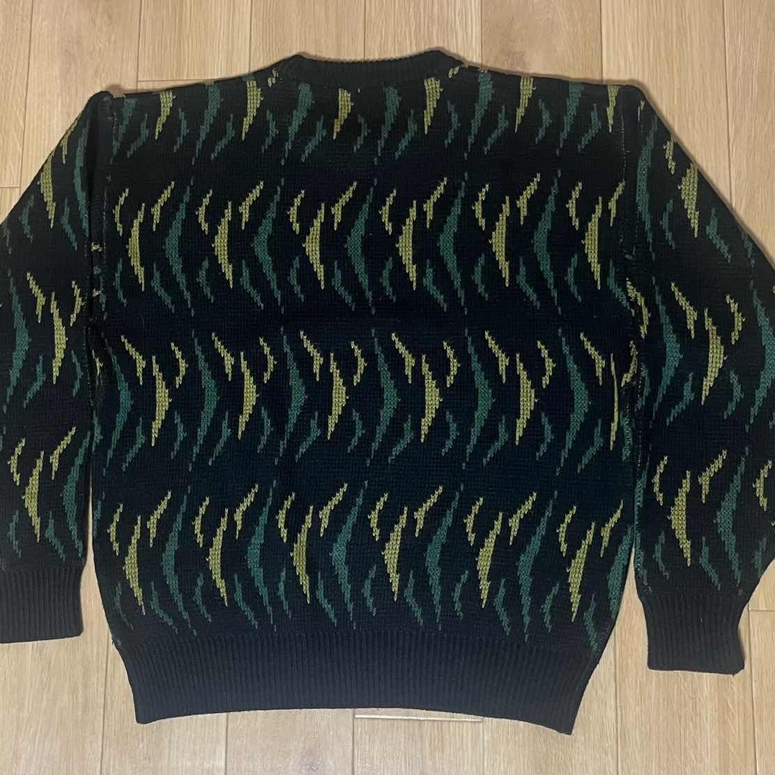 希少】vintage 総柄 デザインニット セーター 80s〜90s頃のヴィンテージ・デザインニットです。 目を引く幾何学的な総柄(アニマル・タイガー風)が今のトレンドにぴったりな一着。 安心の日本製で、アクリル・ウール混の柔らかな肌触りです。 肩幅の広いドロップショルダー仕様なので、着用した際に綺麗なボックスシルエットになります。 男性はもちろん、女性が**オーバーサイズ(ゆるだぼ)**に着用しても非常に可愛いです! ●サイズ:表記 F(メンズM相当) ※素人採寸ですので、多少の誤差はご了承下さい。 ・肩幅:約52cm ・身幅:約54cm ・着丈:約60cm ・袖丈:約52cm ●カラー ブラック × グリーン × イエロー(幾何学柄) ●素材 アクリル 90% 毛(ウール) 10% ●状態 目立った傷や汚れはなく、年代物としては綺麗な状態です。 ※古着・ヴィンテージ品であることをご理解の上、ご購入をお願いいたします。 #ヴィンテージ #古着男子 #古着女子 #90s #80s #レトロ #総柄ニット #デザインニット #日本製 #オーバーサイズ #ゆるだぼ #ユニセックス