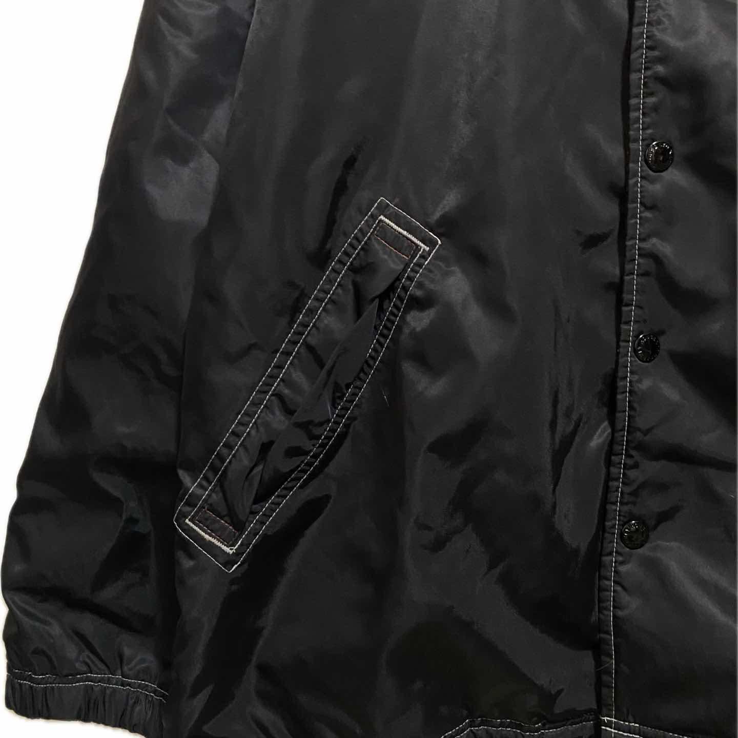 80-90s remake リモンタ ジャケット XL コーチジャケット 80年後期から90年の初期のヴィンテージのボディーを使い、スカルアートを胸に施しました。 ジャケットと明記しているのは、コーチジャケットにしては質がよすぎるからです。 裏に施された裏地の中に軽く防寒性のある場所を集めよう加えられた工夫がされており、さらにリモンタ素材は、保温も抜群、 めちゃくちゃ寒い日だったらコーディネート参考にしてください。インナーにレオパードのボアパーカーを仕込んで、さらにその下にアメカジのスウェットを仕込んでおります。 少し不良テイストのアメカジストリートスタイルを決めてみましたので、参考になりましたら幸いです。ちなみにこのコーディネートができるのは圧倒的にオーバーサイズだからです。ピタピタのジャケットであっていきません。それを念頭に置き、重ね着をガンガン楽しんでください。 ▷color◁ 黒 ※ブラウザで異なる場合ありますがかなり実物には、近づけてます、 ▷size◁ 平置き片面採寸【㎝表記】 表記size XLはあります 着丈/78 身幅/65boxにちかいよって80と思われる、 肩幅/62 袖丈 /65 DSは袖はハンガー採寸 ※多少の誤差は理解下さい 170/Mジャスト体型の私が着て、✔️参考に ジャスト オーバーサイズ ビックサイズ✔︎ 【素材】 リモンタ、裏ポリですが、厚みあって防寒できます、 【状態】 美品 検品、洗濯、検品で、3回チェックして発送しますので、ご安心して、お買い求め下さい!!