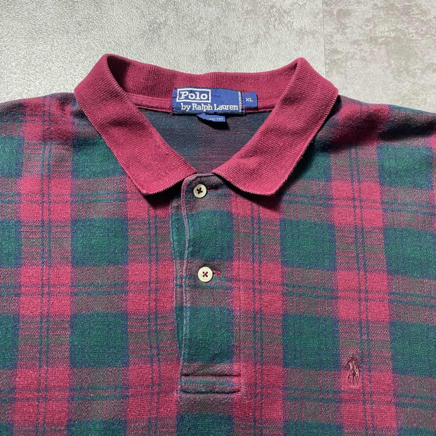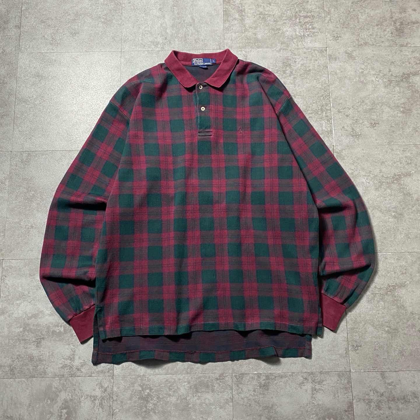 00s ラルフローレン 刺繍ロゴ ポニー チェック ボタンダウン ネルシャツ