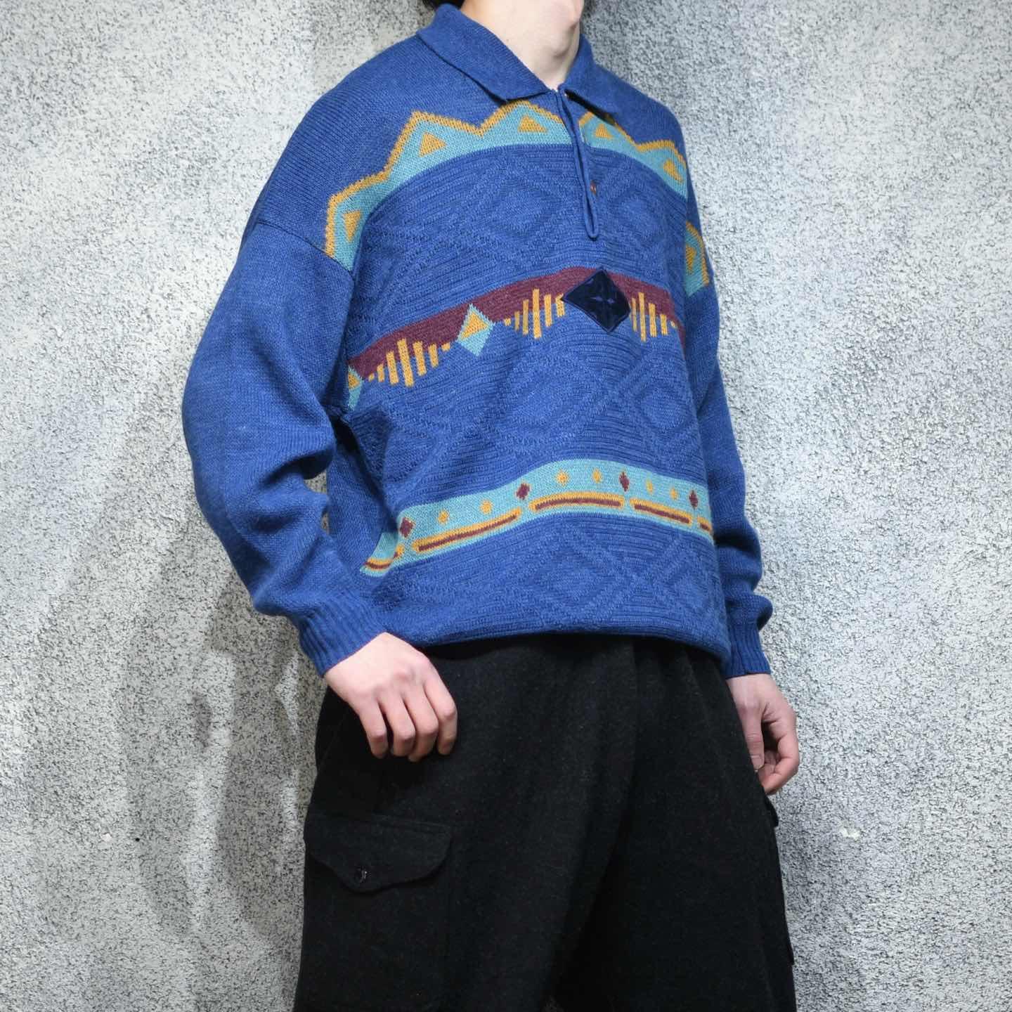 古着 デザインニット ニット セーター アクリルニット グリーン 深緑