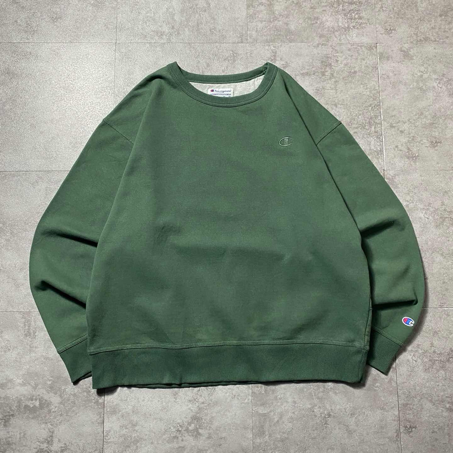 00s チャンピオン 刺繍ワンポイント ブリーチ グリーン スウェット