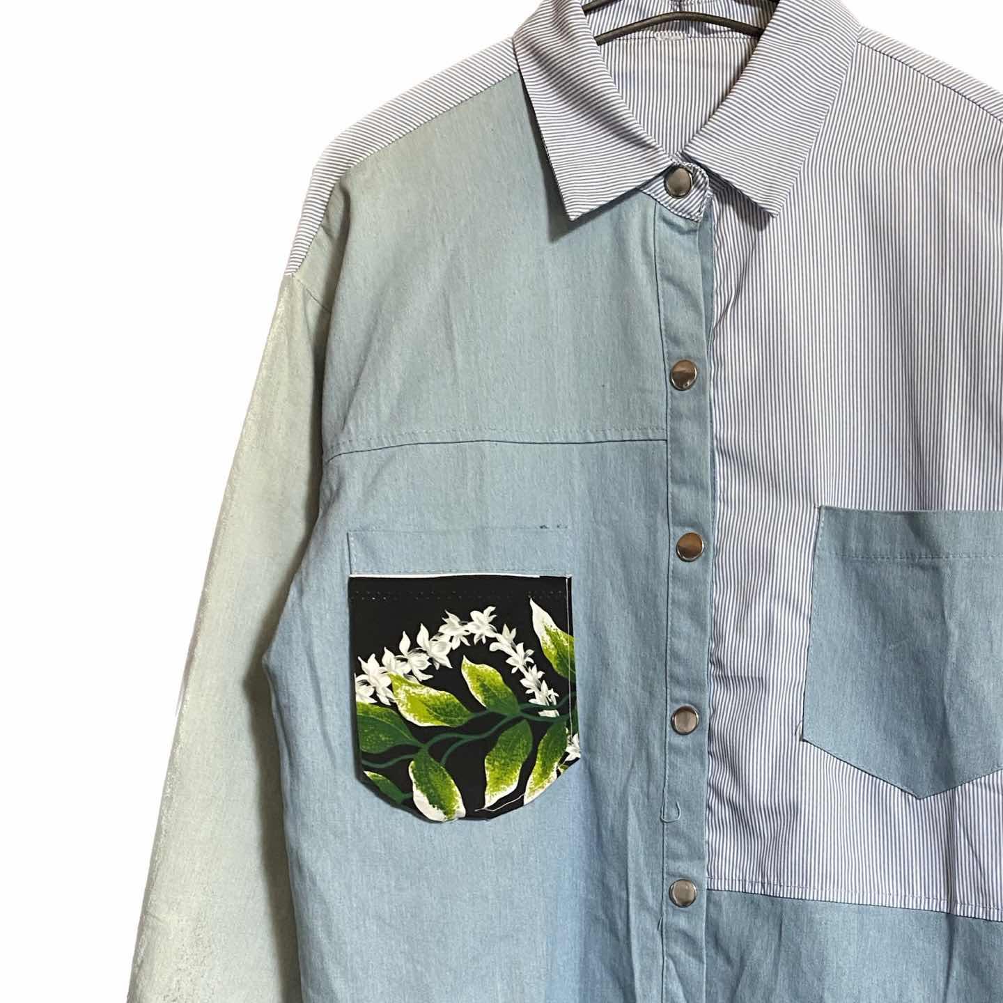 70s vintage remake fade panel L/s shirt ドッキング L •brand 再構築リメイク、再構築とは、バラバラにして、価値を更に上げる一番手間かかる、リメイクの事 •data 70s vintage を3着つかい、 militaryと、フォーマルシャツを、縫い付け合体、世界に一つ袖など、フェードかけて vintageにしあげました、 ボタンとれ、防止でスナップボタンにもしてます。 •point 着画から、説明します、サイズが、大人サイズだから決まる、Aラインを、作る重ね着コーデ、当店オリジナルミリタリーリメイクボトムで、きめました^_^ ▷color◁ 写真通り ※ブラウザで異なる場合ありますがかなり実物には、近づけてます、 ▷size◁ 平置き片面採寸【㎝表記】 表記size Lに。設定、 着丈/74 身幅/53 肩幅/54DS 袖丈 /62DS DSは袖はハンガー採寸 ※多少の誤差は理解下さい 170/Mジャスト体型の私が着て、✔️参考に ジャスト オーバーサイズ✔︎ ビックサイズ 【素材】 ダンガリー ハワイアンマテリアル、70sハの字ヒッコリー 超手間暇かけた力作 【状態】 極上リメイク最強です、 検品、洗濯、検品で、3回チェックして発送しますので、ご安心して、お買い求め下さい!!