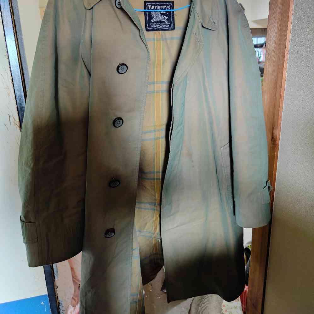 英国を代表する老舗 Burberrys(バーバリーズ) のヴィンテージトレンチコートです。 英国製ならではの仕立ての良さと、光の当たり方で表情が変わる 玉虫色(オリーブ系) が魅力。 羽織るだけで雰囲気が出る王道クラシックで、通勤〜休日まで幅広く活躍します。 【ポイント】 ・**Burberrys(旧タグ)**のヴィンテージ ・英国製 ・人気の 玉虫色(オリーブ系) ・サイズL(ざっくり羽織れて今っぽく着やすい) ・ライナーなし(春秋の主役アウターに◎/重ね着もしやすい) 【状態】 ヴィンテージのため使用感や小さなスレ等はありますが、着用に支障のある大きなダメージはありません。 状態は写真にてご確認ください。気になる点は購入前にコメントください。