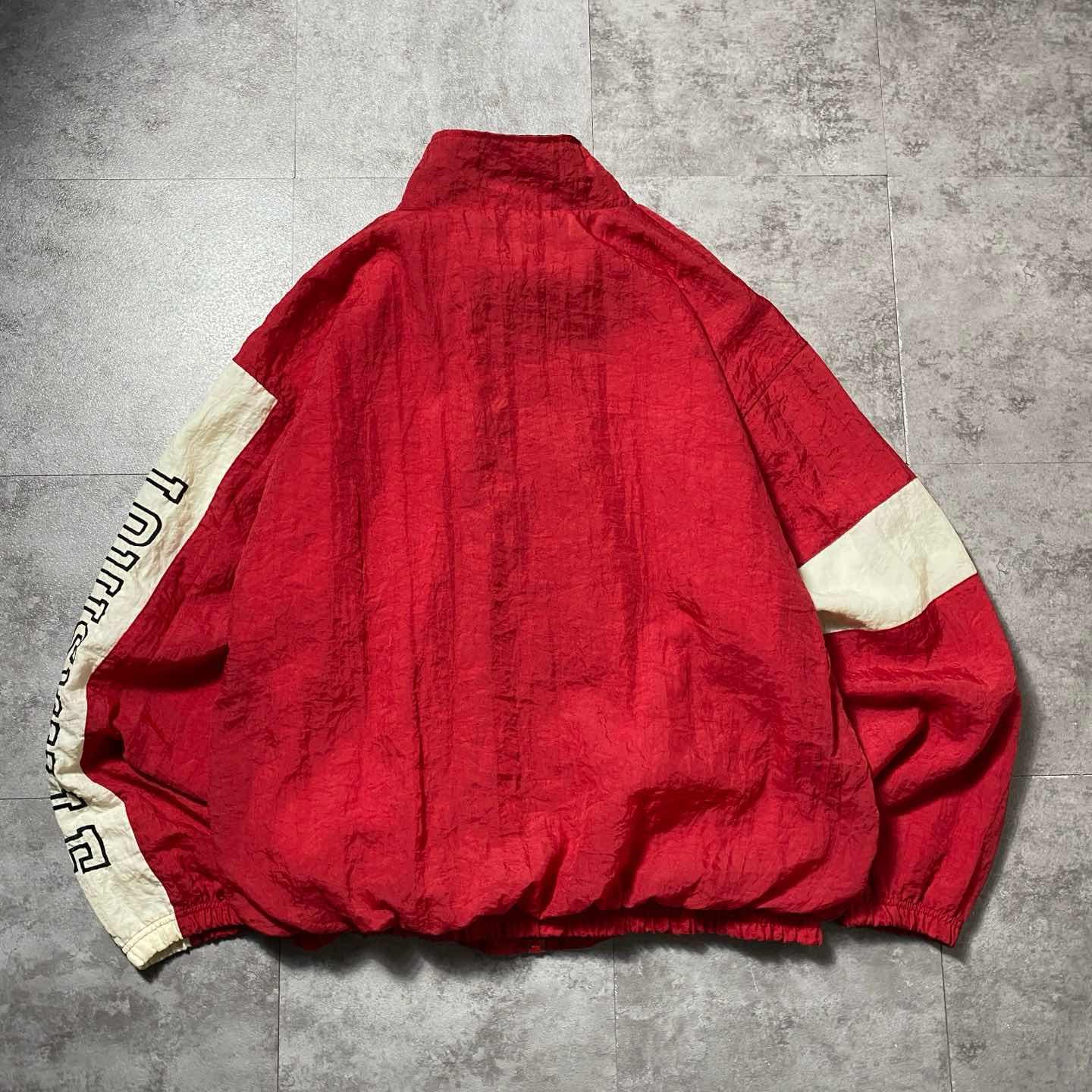 ○Size○ 表記→XL ・着丈71 ・身幅71 ・肩幅65 ・袖丈64 (cm) ○Color○ ・レッド、ホワイト ○Material○ ・表面↪︎100%ナイロン ・裏地↪︎65%ポリエステル 35%コットン ○Condition○ ・背面一部汚れ箇所あり ○Caution○ 当店で取り扱っている商材は全て『古着』となっております。 そのため、多少の状態難(ほつれ、傷、汚れ、リブの伸び、使用感、擦れ、色あせ、etc)がある場合がございます。 新品同様の完璧なお品物をお求めの方は当店でのお買い物を控えて頂きますよう宜しくお願いします。 また、購入された商品に関しましては、購入日時から起算して『72時間以内に』発送手続きの方を取らせて頂きます。 お急ぎの場合は購入前に当店オンラインストアの方にお問い合わせ頂きますよう宜しくお願いします。 25/1987