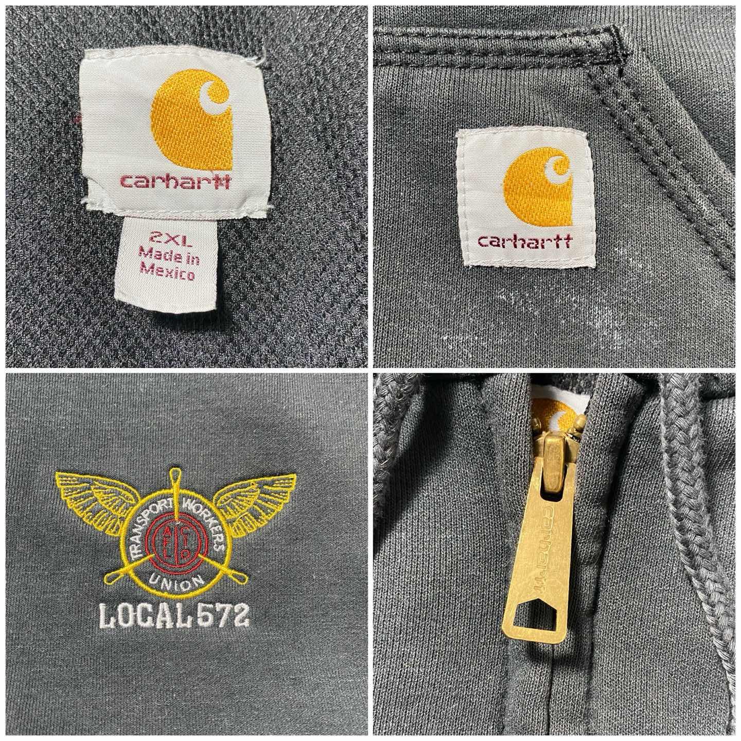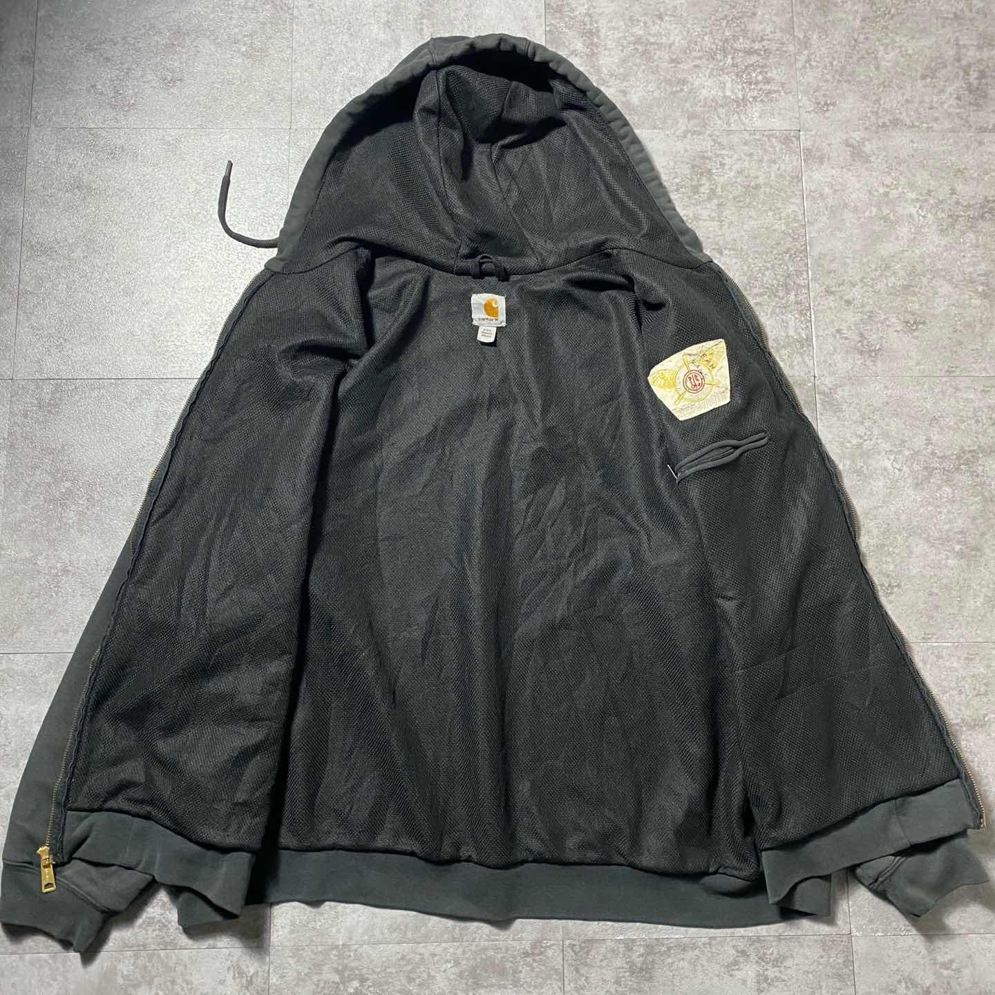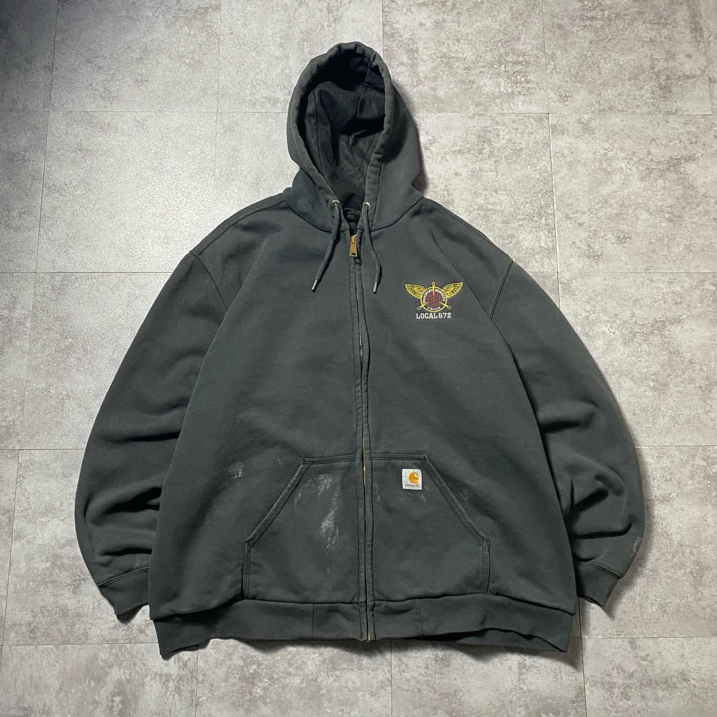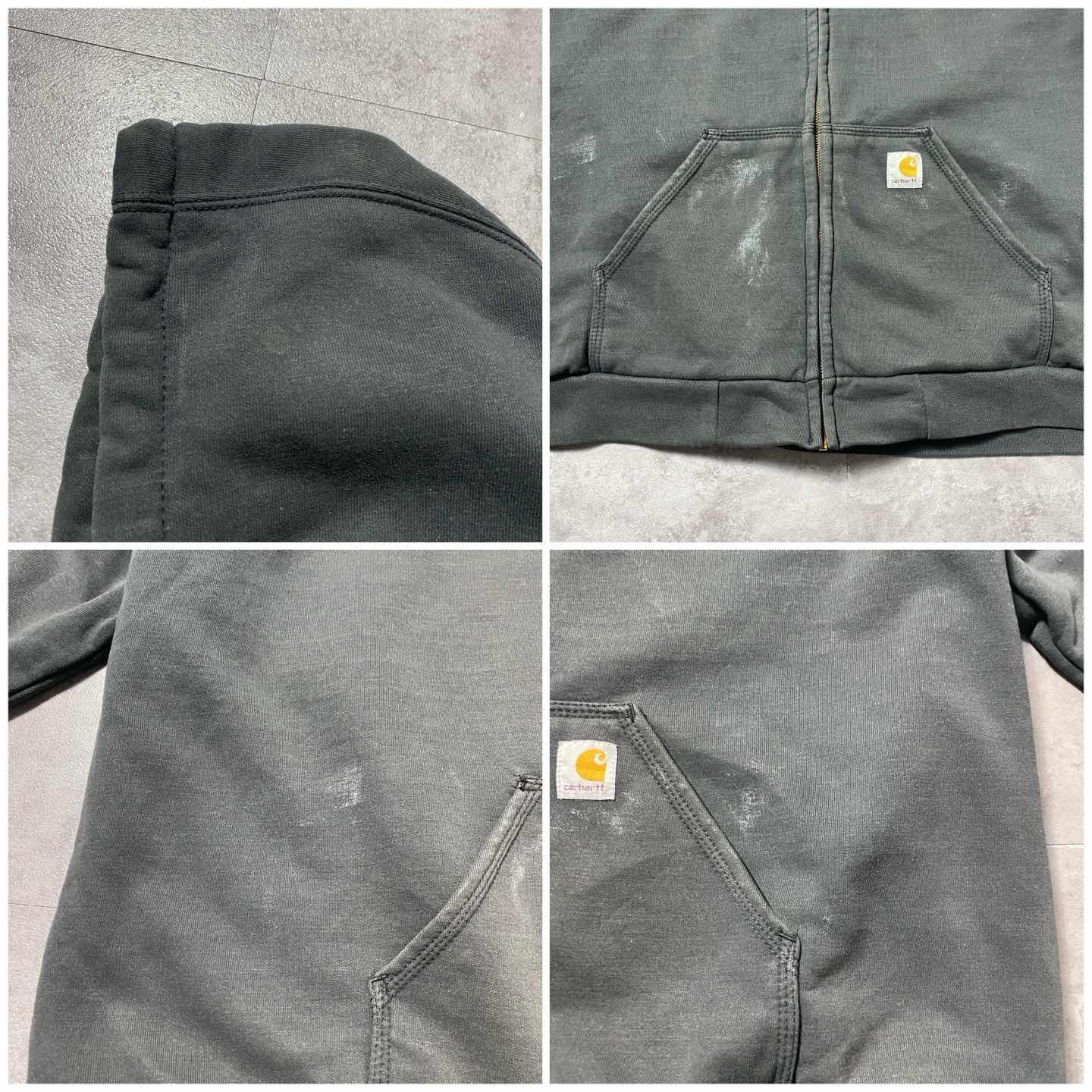 【XL】carhartt ワンポイント 胸ポケット ダークグレー ジップパーカー