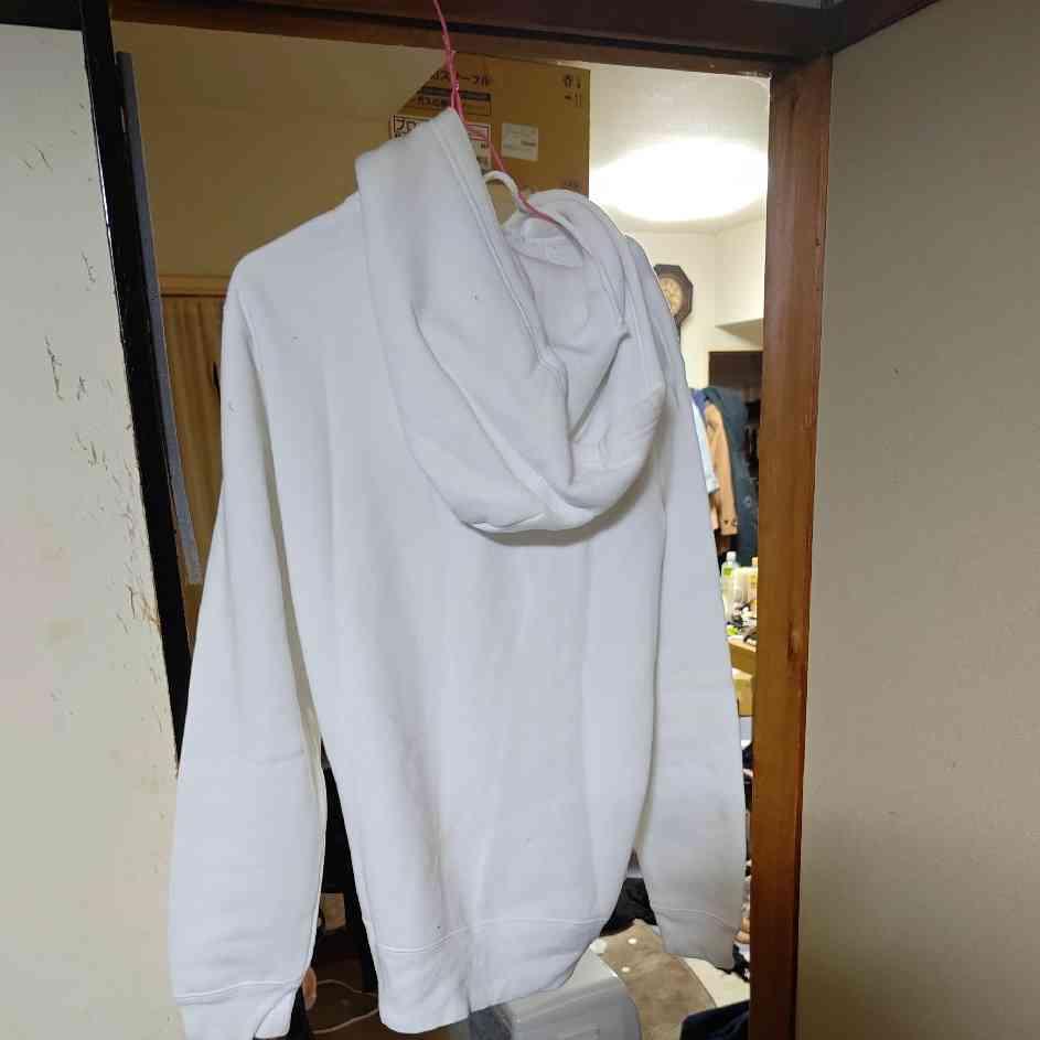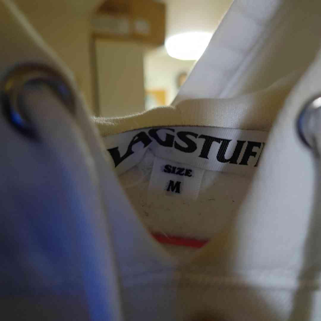 FLAGSTUFF(フラグスタフ)のロゴパーカーです。 カラー:ホワイト/サイズ:M。 ※首周りにシミがあります(写真参照)。それ以外は大きなダメージは見当たりません。 中古・訳ありにご理解ある方のみお願いします