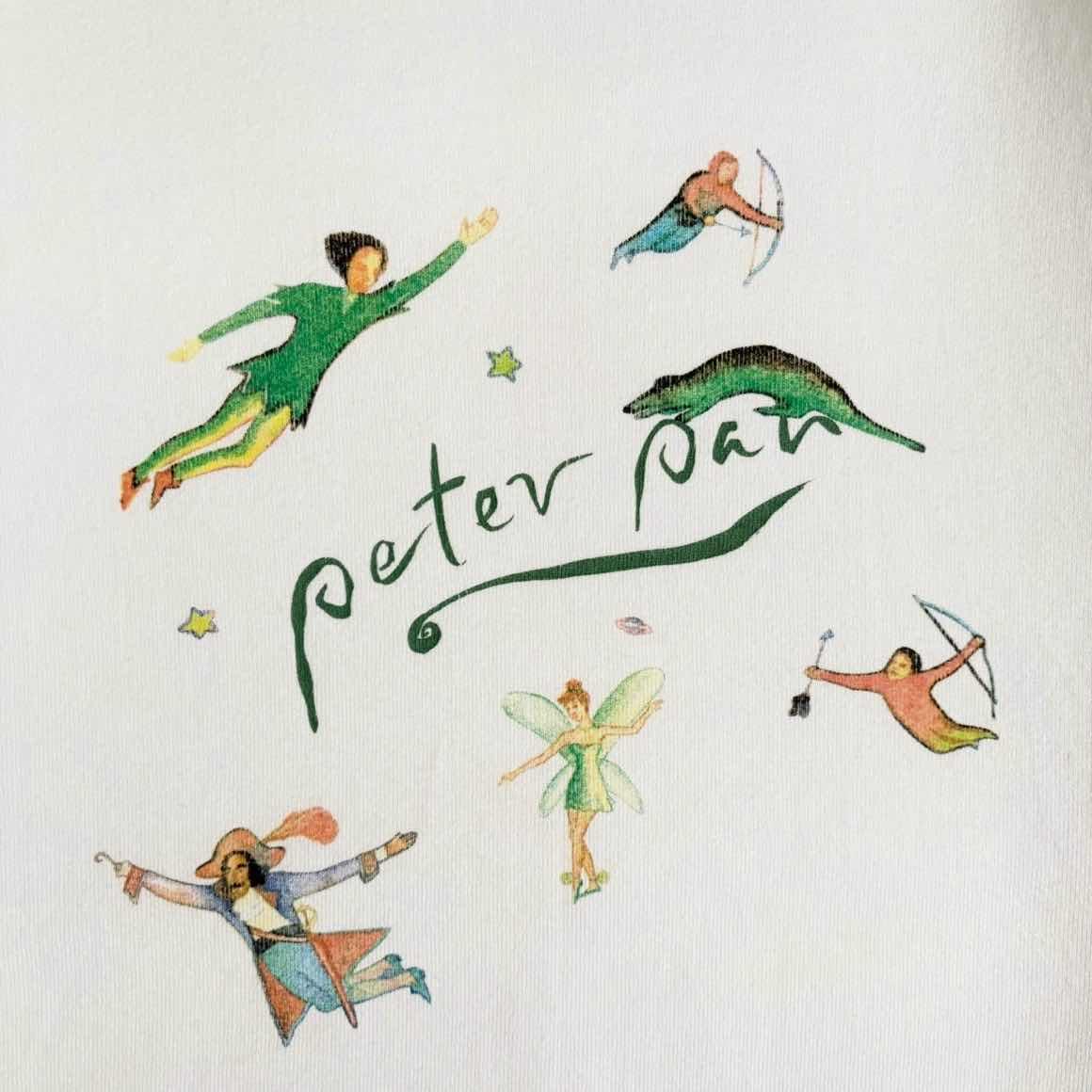 ○商品説明 90s USA製 FRUITOFTHELOOM 1991年のコピーライトが入ったピーター・パン。 フロントにはピーター・パン、ティンカー・ベル フック船長、ワニ、そして弓を射るロストボーイズ たちが、アートチックで水彩画のような優しいタッチでデザインされております。 バックには夜空をイメージした星々とともに "some things you never outgrow" いくつになっても卒業できないものがある という、大人にも刺さる素敵なメッセージが プリントされています。 しっかりとした生地感でどちらかというと ヘビーウェイトよりになっております。 この一枚以外見たことないピーターパン。 気になった方は是非。 ○サイズ 表記XL 平置き ・肩幅65cm ・身幅65cm ・袖丈65cm ・着丈71cm ○商品の状態A A:使用感がほとんどなく、汚れやシミもなし B:多少使用感はあるが、汚れやシミも少ない C:使用感があり、汚れやシミがある D:使用感があり、大きな汚れや破れあり ○色 ホワイト #90s#usa製 #FRUITOFTHELOOM#フルーツオブザルーム#PeterPan#ピーターパン#スウェット