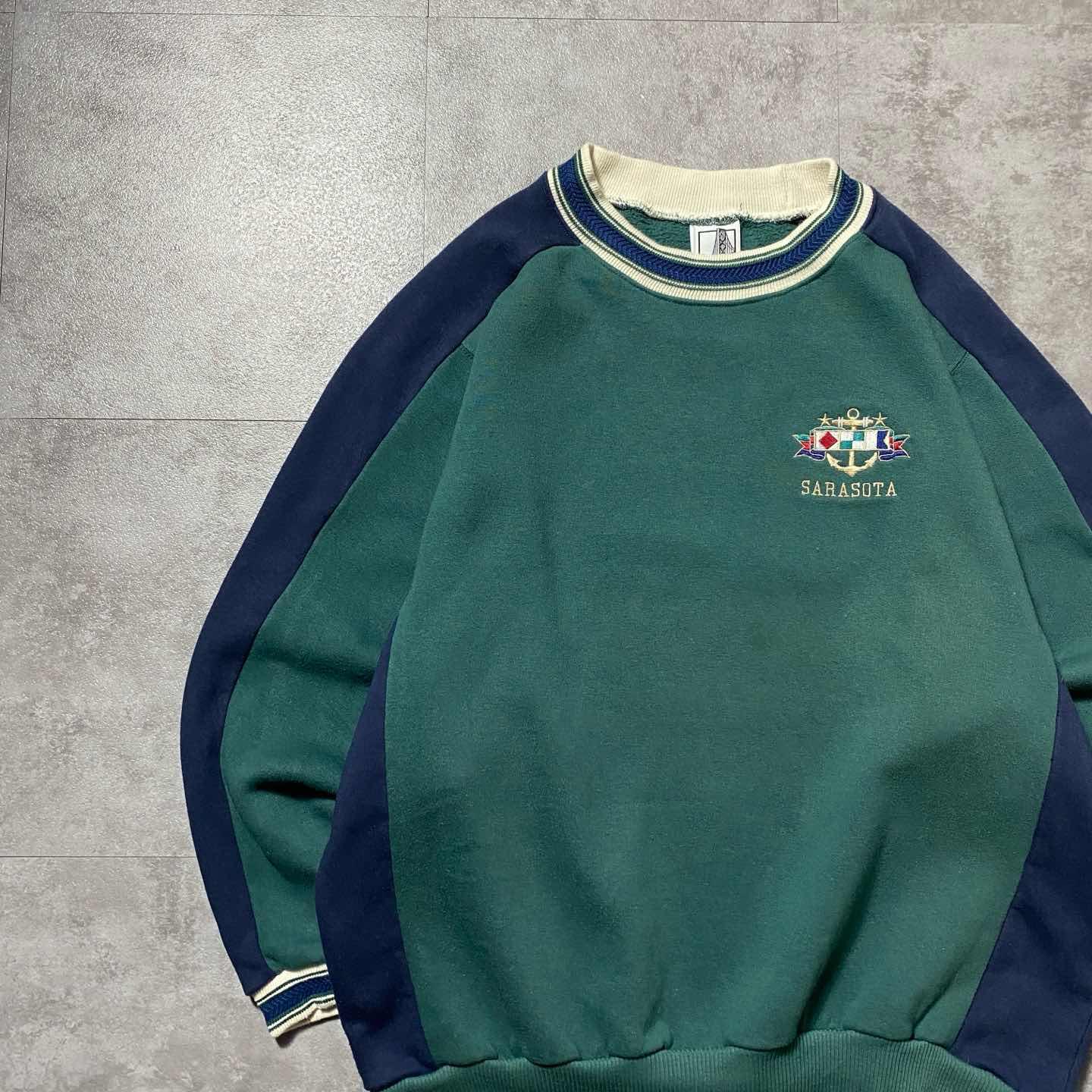 00s チャンピオン 刺繍ワンポイント ブリーチ グリーン スウェット