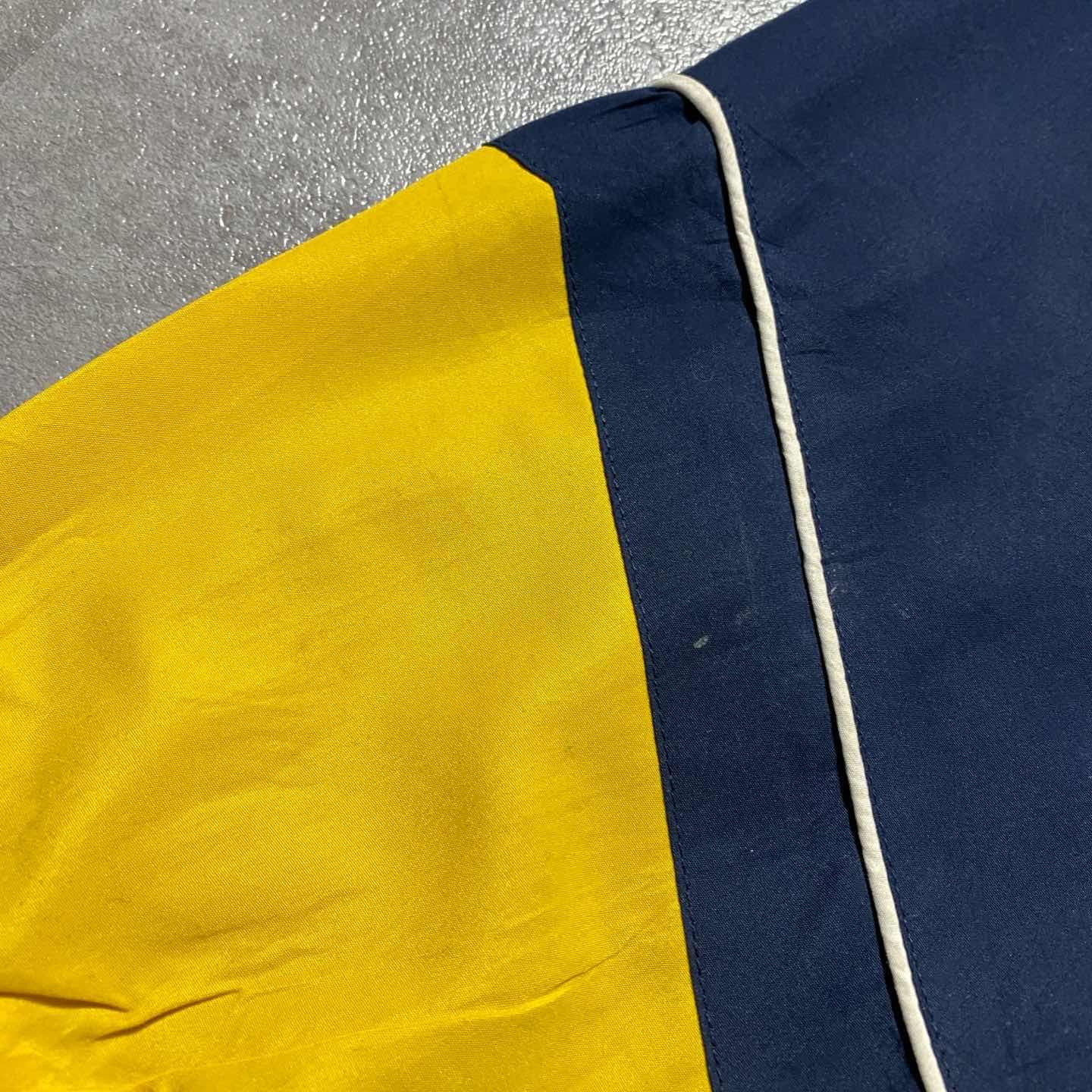 ○Size○ 表記→M(着用感Lサイズ相当) ・着丈70 ・身幅63 ・肩幅52 ・袖丈66 (cm) ○Color○ ・ネイビー、イエロー ○Material○ ・表面↪︎100%ポリエステル ・裏地↪︎65%ポリエステル 35%コットン ○Condition○ ・左肩付近に一部薄汚れ箇所あり ○Caution○ 当店で取り扱っている商材は全て『古着』となっております。 そのため、多少の状態難(ほつれ、傷、汚れ、リブの伸び、使用感、擦れ、色あせ、etc)がある場合がございます。 新品同様の完璧なお品物をお求めの方は当店でのお買い物を控えて頂きますよう宜しくお願いします。 また、購入された商品に関しましては、購入日時から起算して『72時間以内に』発送手続きの方を取らせて頂きます。 お急ぎの場合は購入前に当店オンラインストアの方にお問い合わせ頂きますよう宜しくお願いします。 25/1933
