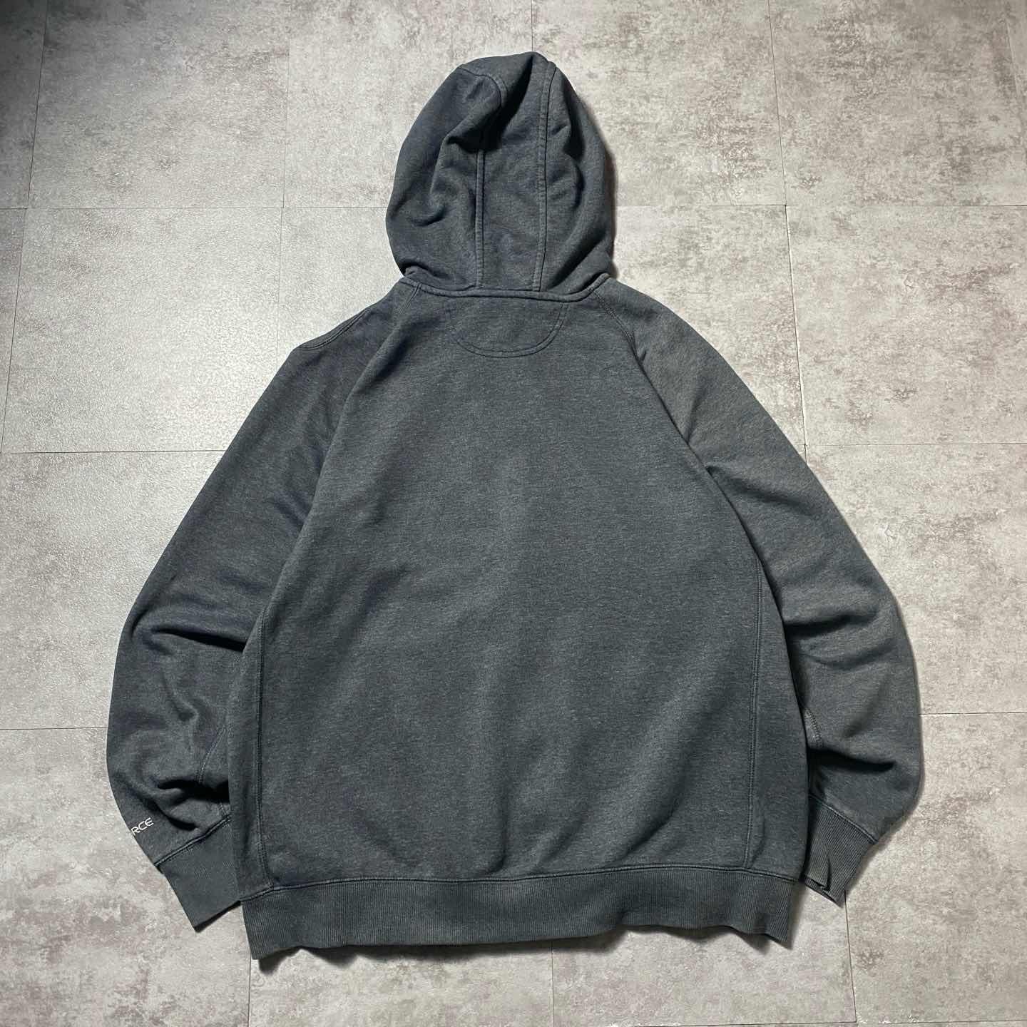 【XL】carhartt ワンポイント 胸ポケット ダークグレー ジップパーカー