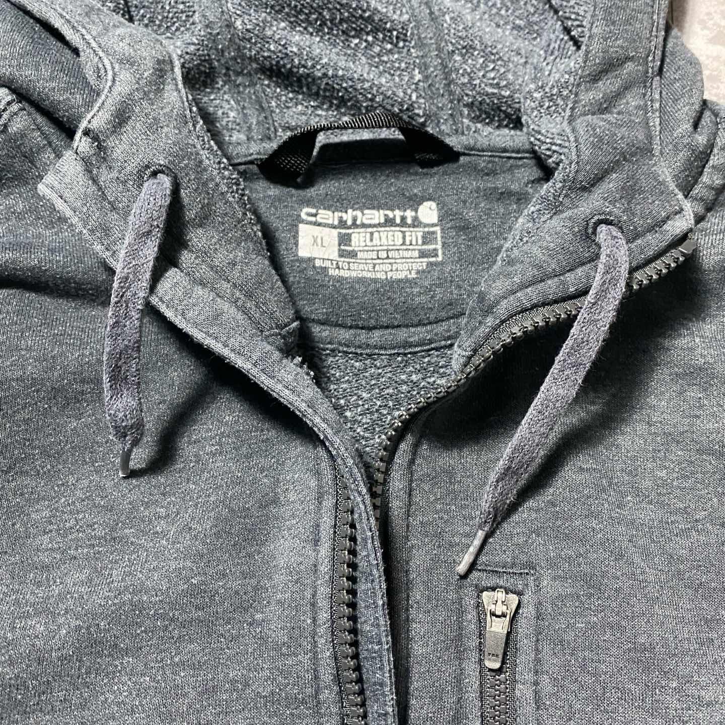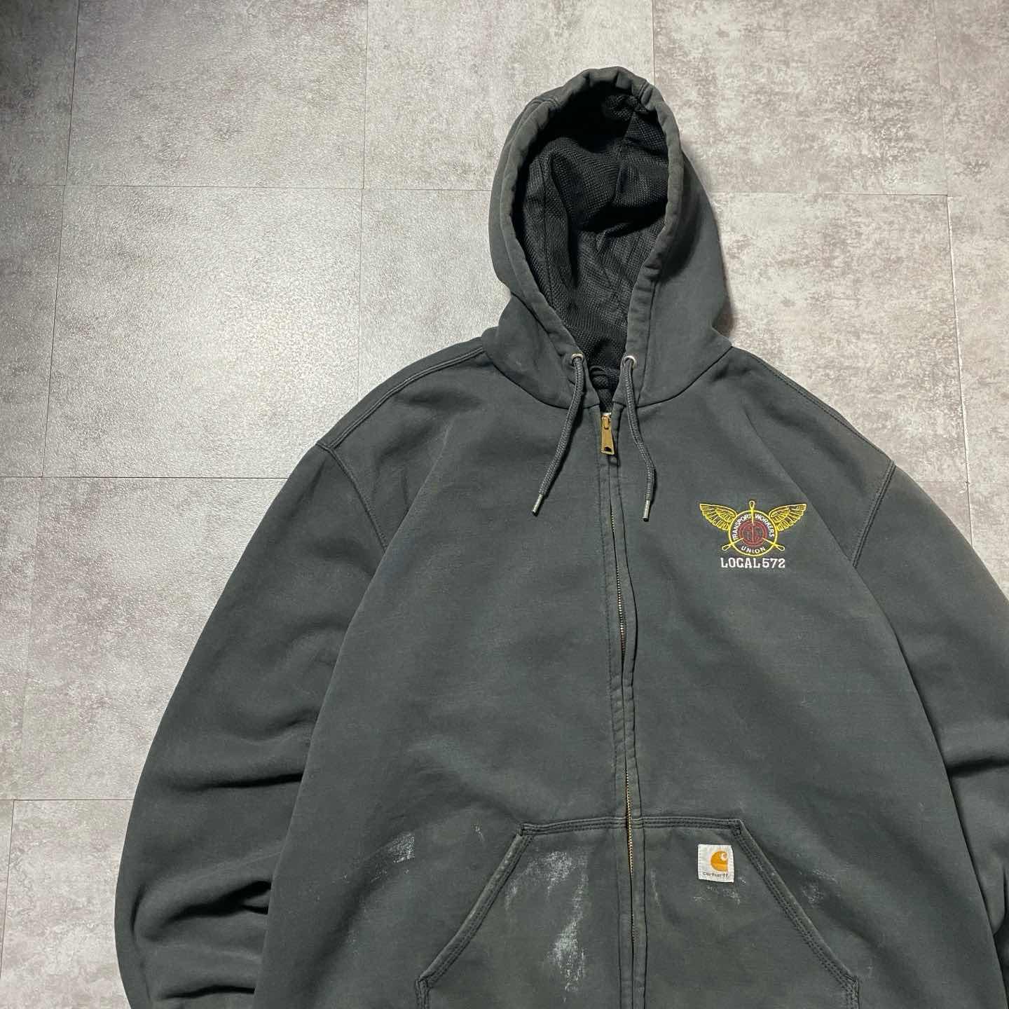 carhartt ダメージ 刺繍企業ロゴ 2XL ヘビーオンス ジップパーカー