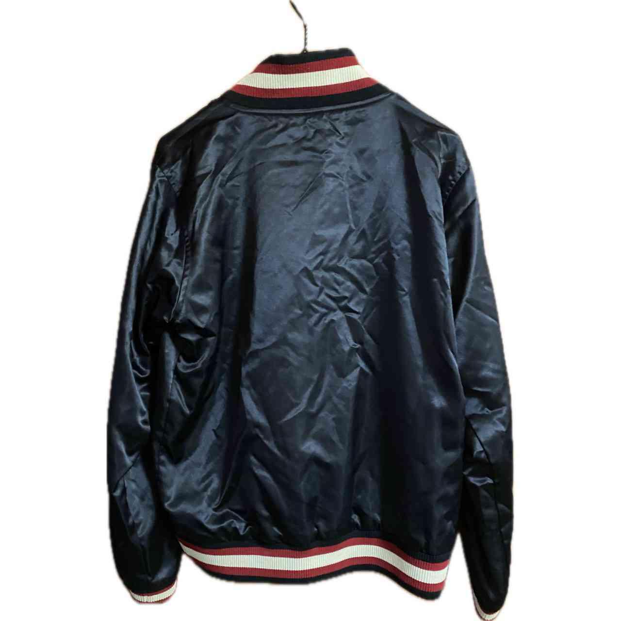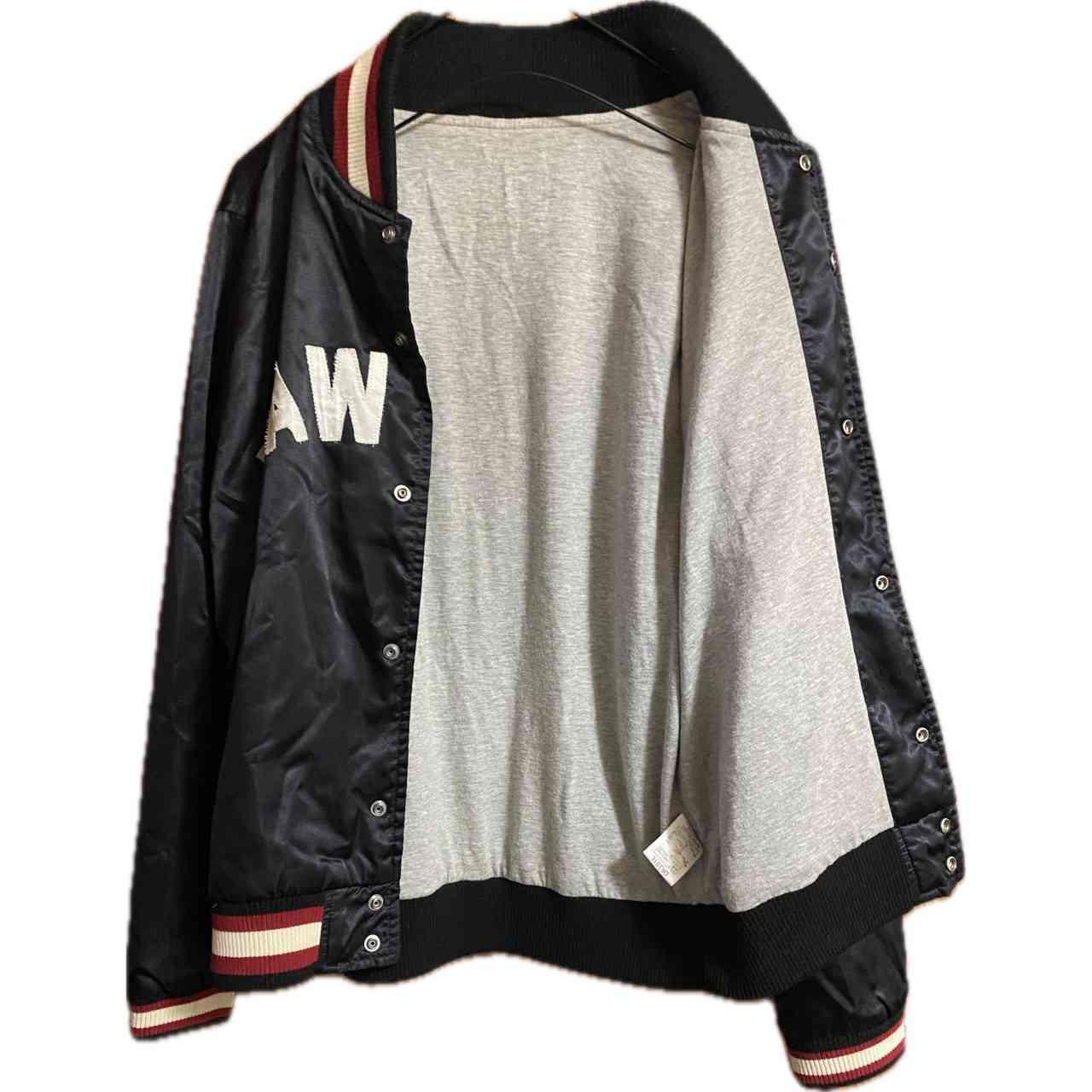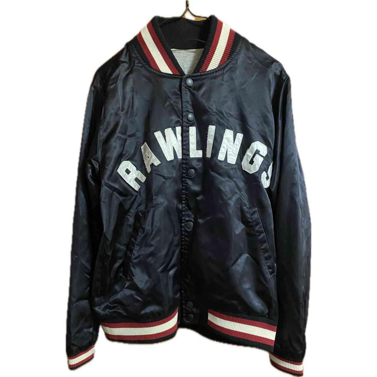 まずコーデから説明 大きすぎず小さすぎない 最高なサイズだから きれいめなはずのボトム トもカチッと決まるアイテムだったら 古着好きには、たまらない! •Brand: Rawlings MLB ユニフォームとか、グローブなどの、officialbrandと asicsダブルネーム !!激レアスタジャン、 豆知識 Rawlingsは、87年に、ブランド化した、 そもそも、その前からMLB のグローブとか、ユニフォームを手掛ける化け物企業 だがスタートアップのブランドは、認知度がない よってASICSがオファーでダブルネームスタートアップタイプ因みにだから88−89年確定、 で、その後コラボは一切ないだから、激レア •data: 80s vinvage •point:アシックスの角張ったフォントの品質タグ 「157–163 / M」などの 旧JIS規格のサイズ表記 ナイロン特有の光沢感の強い素材(80s〜90sの特徴)刺繍ではなくフェルトワッペン貼りのRAWLINGSロゴ(80s〜90sらしいつくり) 【希少価値が、止まらない 特筆point】 Rawlings は米国ブランドだが、日本企画のASICS製が現存数少なめ 80s〜リモンタ素材スタジャンは近年の古着市場で人気上昇中 首・裾・袖の**2色リブ(赤×白×黒)**が人気ディテール 特に 前面アーチロゴのRAWLINGS は球団物より球モノ好きに刺さりやすく、希少価値は、高くなる一方、買うなら今!です。 ▷color◁ ブラック ※ブラウザで異なる場合ありますがかなり実物には、近づけてます、 ▷size◁ 平置き片面採寸【㎝表記】 表記size Lくらい 着丈/63 身幅/55 肩幅/46 袖丈 /64 DSは袖はハンガー採寸 ※多少の誤差は理解下さい 170/Mジャスト体型の私が着て、✔️参考に ジャスト オーバーサイズ✔︎ ビックサイズ 【素材】 リモンタ 【状態】 美品