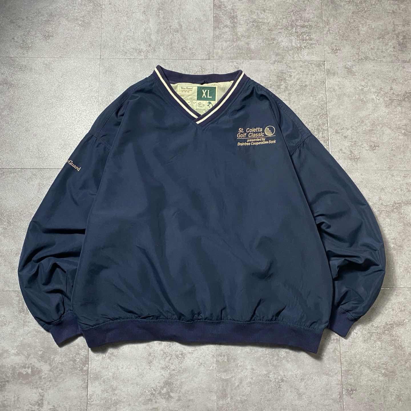 90s Wear Guard 刺繍企業ロゴ ラインリブ ナイロンプルオーバー