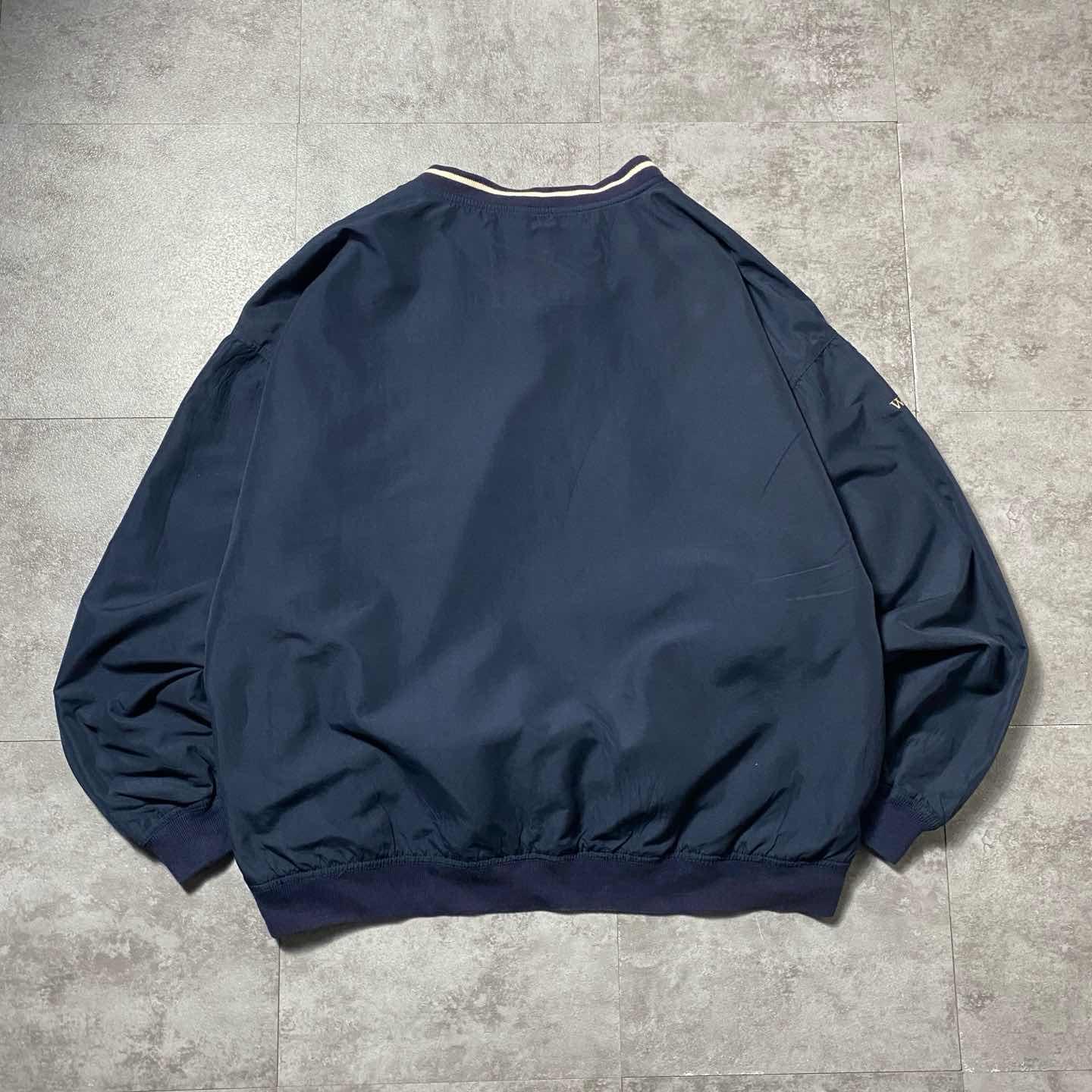90s J.AMERICA 刺繍ロゴ ラインリブ ネイビー ナイロンプルオーバー