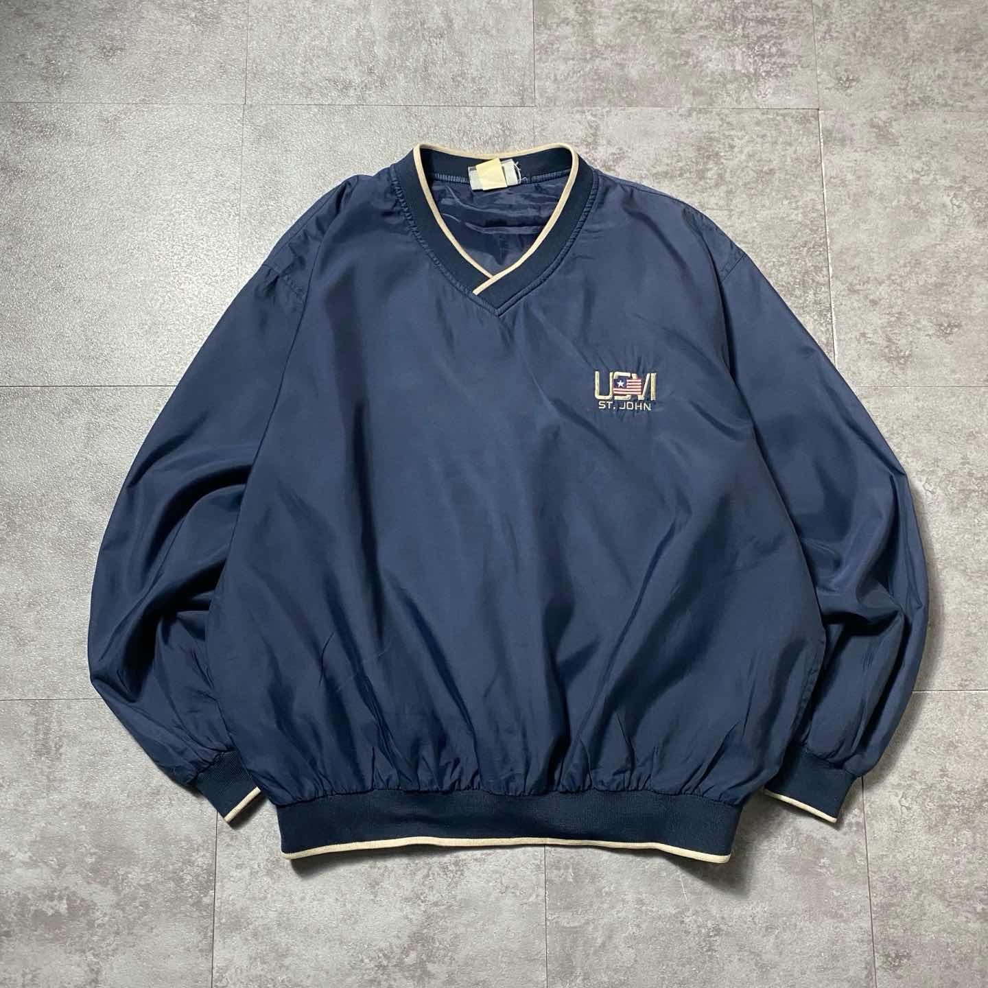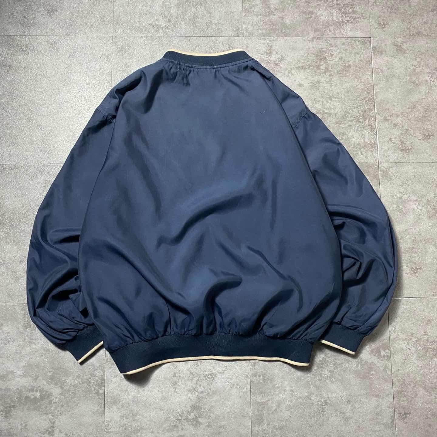 90s J.AMERICA 刺繍ロゴ ラインリブ ネイビー ナイロンプルオーバー