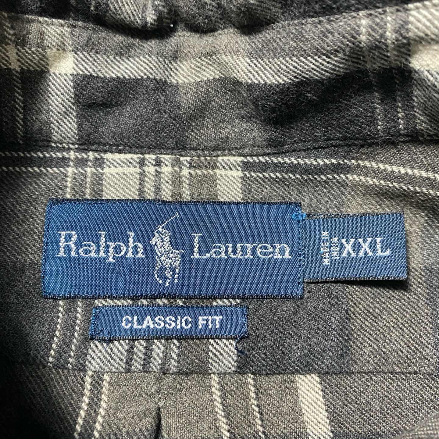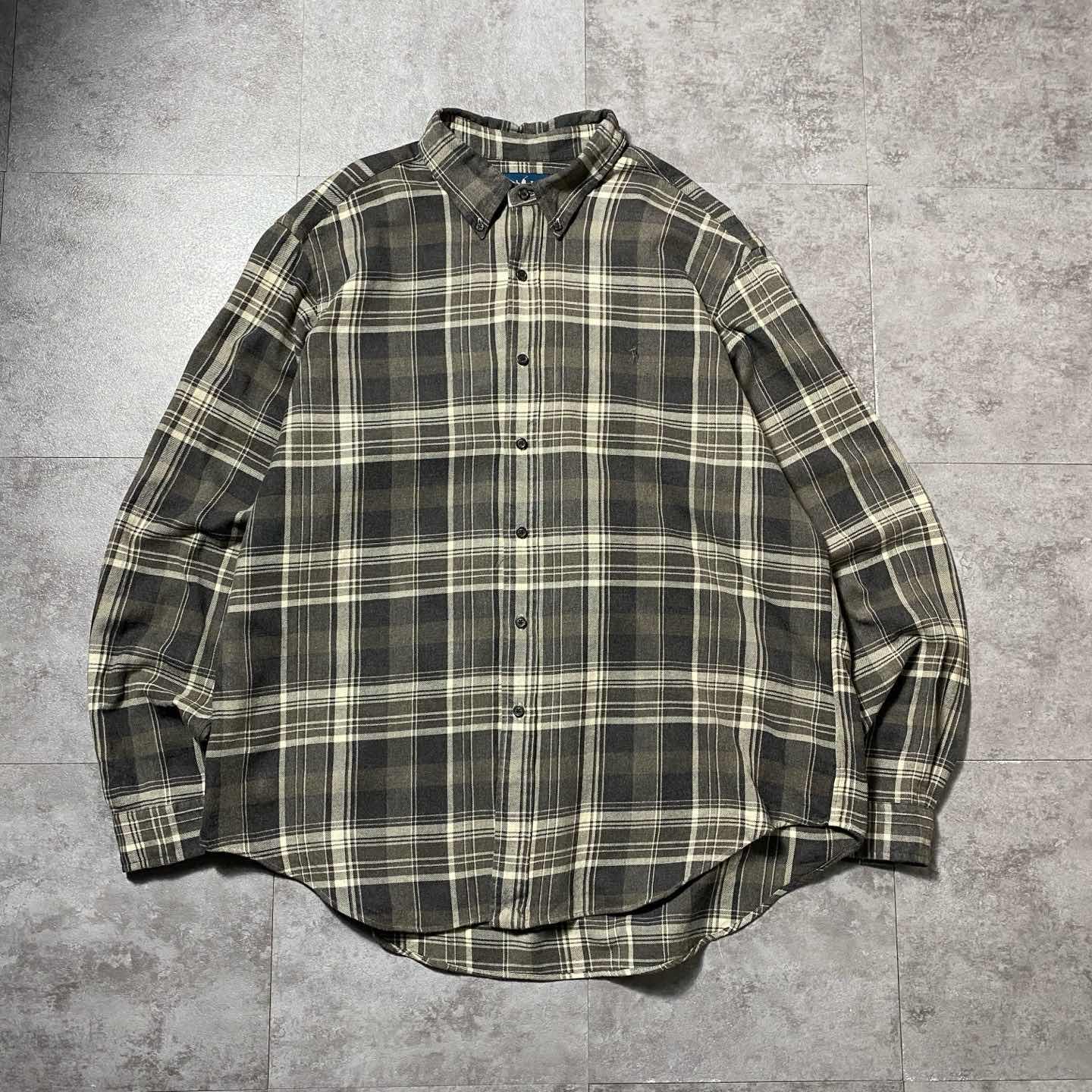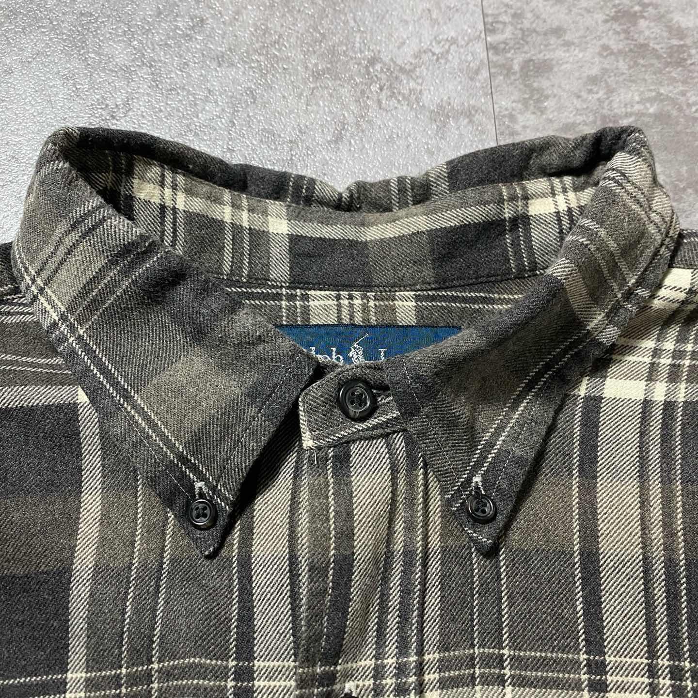 00s ラルフローレン 刺繍ロゴ ポニー チェック ボタンダウン ネルシャツ