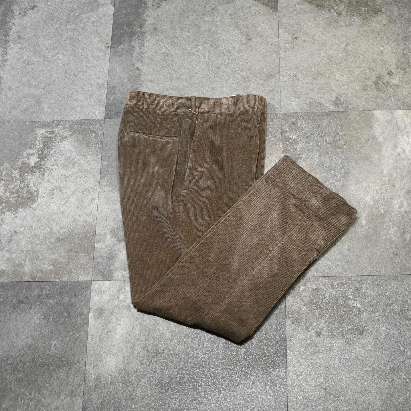 SIZE:- ウエスト87cm 総丈109cm 股下81cm わたり37cm 裾幅25cm fabric/質感よりcotton made in USA 着用画像 173cm/56kg 1856年アメリカでフィッシング用品を 手掛けるところから始まった、アウトドアブランド ”ORVIS” そのORVIS直属の製造ラインではなく、 ”Stalin”というテーラードファクトリーが請け負い 仕立てられた一本。 単色のコーデュロイ生地ではなく、メランジ調で 尚且つ赤のネップまで散りばめられた コーデュロイパンツです。 そこから生まれる上品な雰囲気は、 カジュアルになりがちなコーデュロイパンツとは 違った立ち位置で落とし込めるのではないでしょうか。 裾まで太さを残した、太めのシルエットも◎ ※裾上げ等のレングス直しにつきましては、 購入前に、必ずご連絡お願い致します。 ※撮影状況により、実物と多少色が異なる 場合がございます。 ※古着を取り扱っているため、気づかない汚れや ほつれがある場合がございます。 ※サイズは着用感で選んでおり、 表記サイズは説明欄の最初に記載しております。 old vintage ヴィンテージ used 80's 90's POLO RALPH LAUREN Eddie Bauer OLD GAP LANDS' END ランズエンド LLBean エルエルビーン オールドギャップ エディーバウアー ラルフローレン ブルックスブラザーズ Brooks Brothers ワイドパンツ タックパンツ などがお好きな方 #vintage #used #90s #80s #古着 #ヴィンテージ #LLBean #EddieBauer #oldgap #LANDSEND #ラルフローレン #POLORALPHLAUREN #ブルックスブラザーズ #BrooksBrothers #コーデュロイパンツ #スラックス #ORVIS #ワイドパンツ