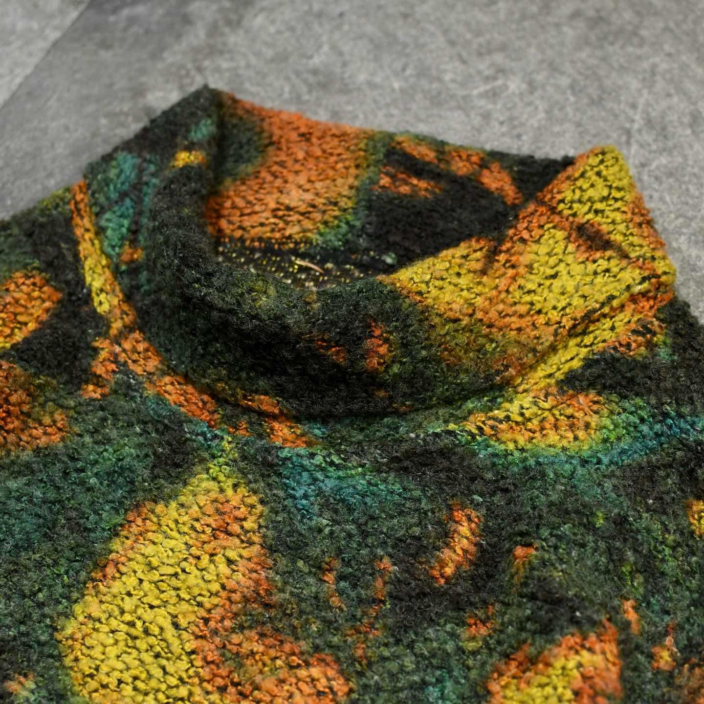 SIZE:54 着丈61cm 肩幅54cm 身幅64cm 袖丈56cm fabric/acrylic・wool made in italy 着用画像 173cm/56kg 締め付けの無い緩いタートルネックと、 目を惹く色使い。 アウター代わりとしても着ている方を見掛ける フリースですが、こちらはインナーとして 仕込める厚みで、レイヤード用としても活躍する 1着です。 フリースで着膨れせずに落とし込めるのは 嬉しいですし、スタイリングの幅を広げてくれる アイテムとして、手元にどうでしょう。 ※撮影状況により、実物と多少色が異なる場合が ございます。 ※古着を取り扱っているため、気づかない汚れや ほつれ等がある場合がございます。 ※サイズは着用感で選んでおり、 表記サイズではございません。 表記サイズは説明欄の最初に記載しております。 古着 オーバーサイズ old vintage ヴィンテージ used 80's 90's アメリカ古着 ユーロ古着 POLO RALPH LAUREN Eddie Bauer OLD GAP LANDS' END ランズエンド LLBean エルエルビーン オールドギャップ エディーバウアー ラルフローレン ブルックスブラザーズ Brooks Brothers ロンT パイル 柄 などがお好きな方 #vintage #オーバーサイズ #old #used #90s #80s #古着 #ヴィンテージ #アメリカ古着 #ユーロ古着 #LLBean #エルエルビーン #EddieBauer #エディーバウアー #oldgap #オールドギャップ #LANDSEND #ランズエンド #NAUTICA #ノーティカ #ラルフローレン #POLORALPHLAUREN #ブルックスブラザーズ #BrooksBrothers #フリース #タートルネック #カットソー