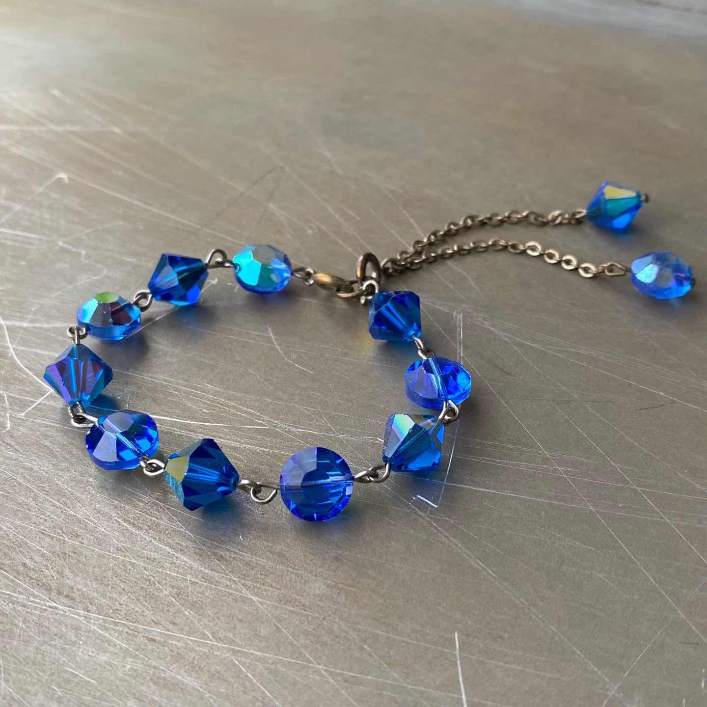 Vintage 70s-80s USA retro blue bijou beads bracelet