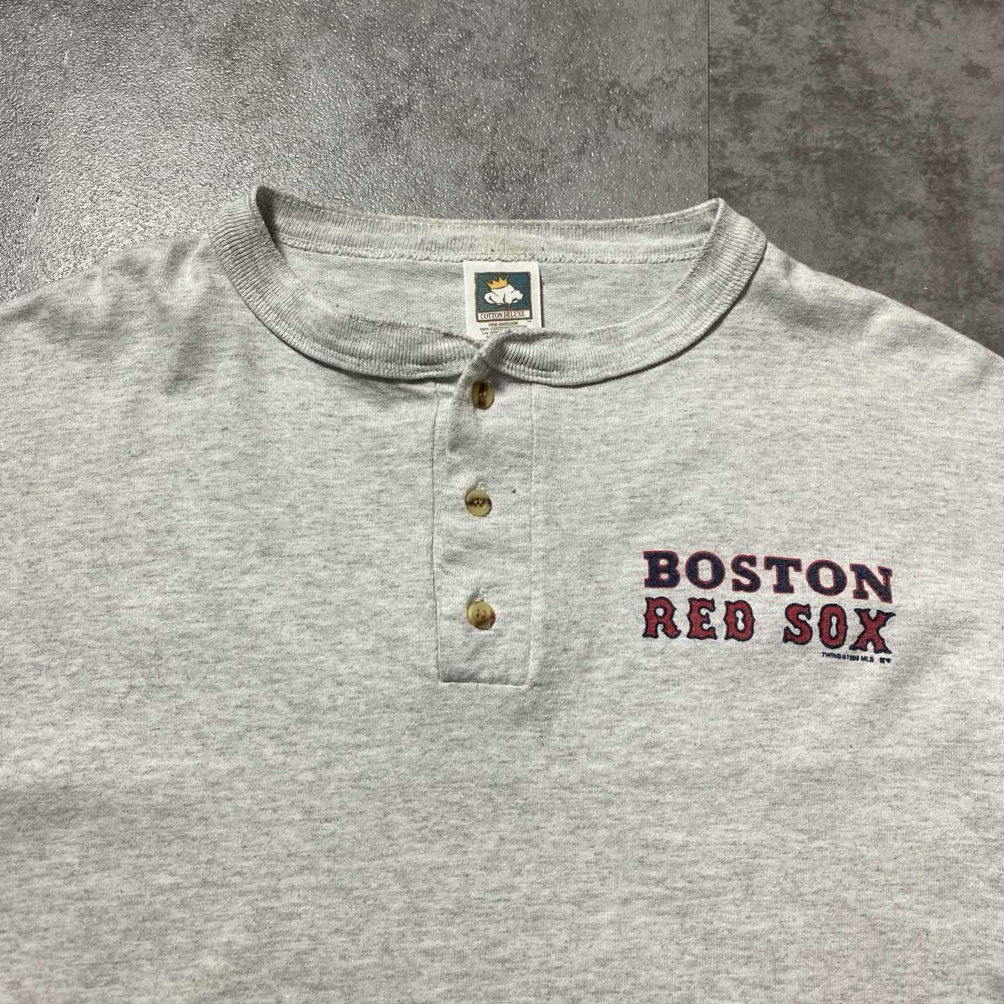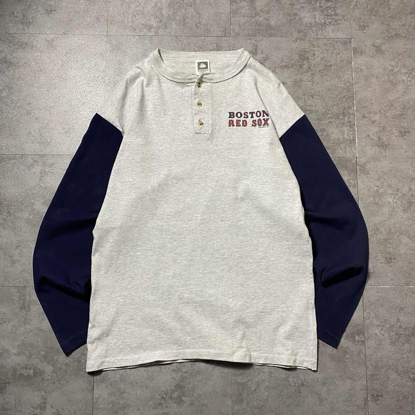 【USA製】90s RED SOX ヘンリーネック シングルステッチ ロンT