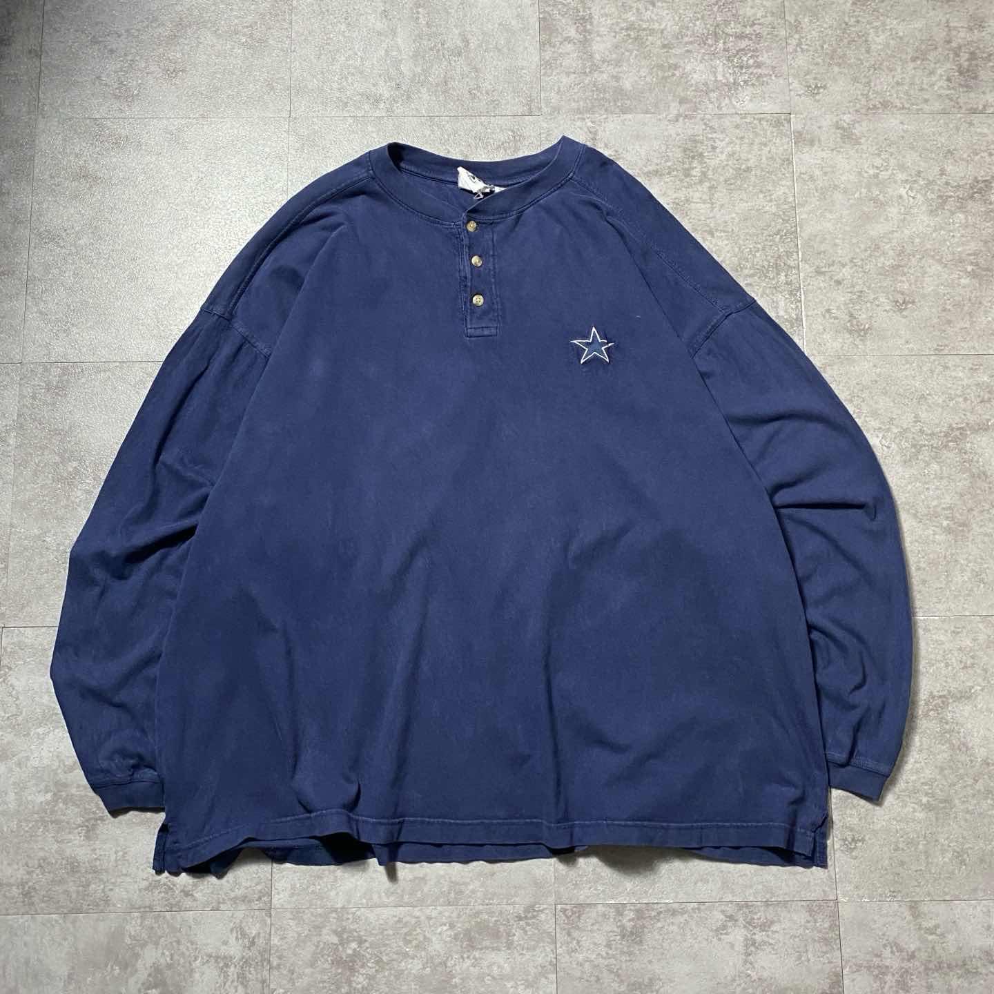 90s THE EDGE ダラスカウボーイズ 刺繍ロゴ ヘンリーネック ロンT