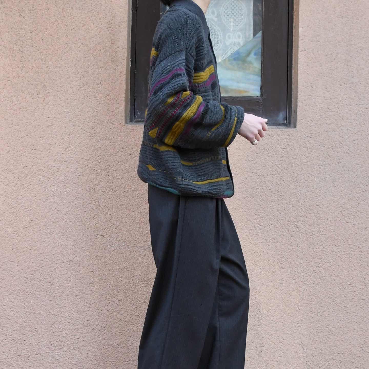 古着 リバーシブル アルパカ混 ニット ブルゾン グレー カーディガン